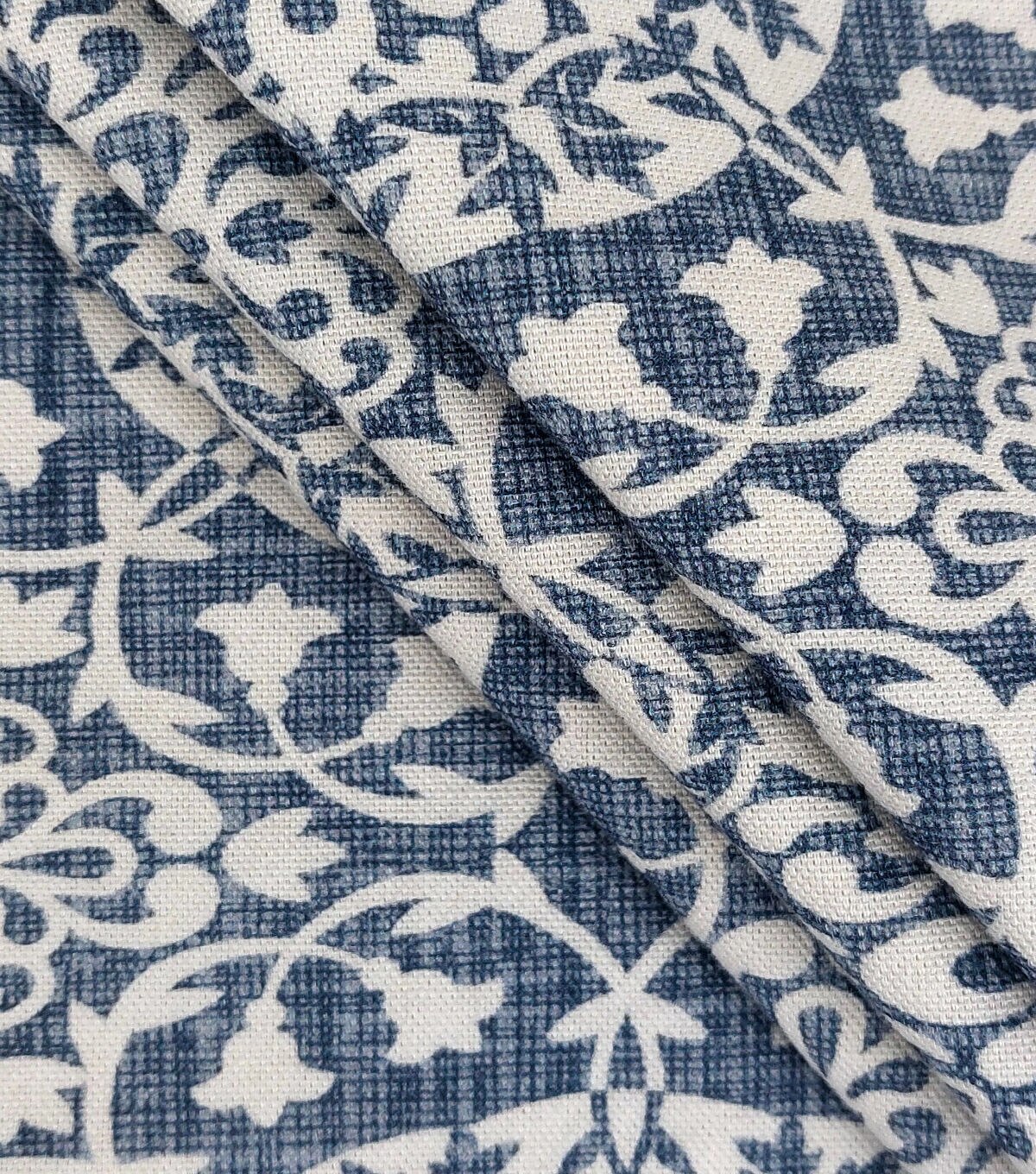 Medallion On Blue Cotton Canvas Fabric