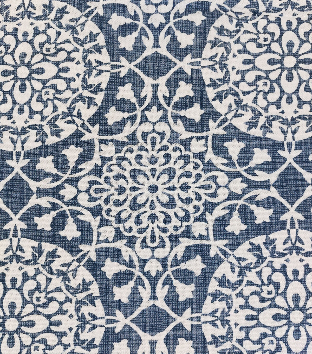 • Medallion On Blue Cotton Canvas Fabric
