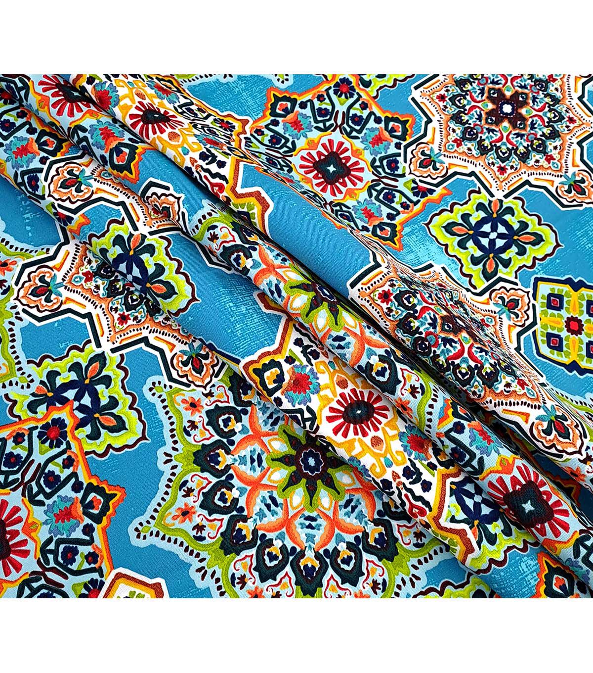 Transform your outdoor living space into an oasis with our Medallion Prints on Blue Outdoor Fabric. The intricate medallion pattern on a beautiful blue background is sure to add a touch of elegance to your patio, deck or garden. Made from 100% polyester, this fabric is durable and long lasting, making it perfect for outdoor use. The DWR finish ensures that the fabric is water repellent, protecting it from the elements and making it easy to clean.