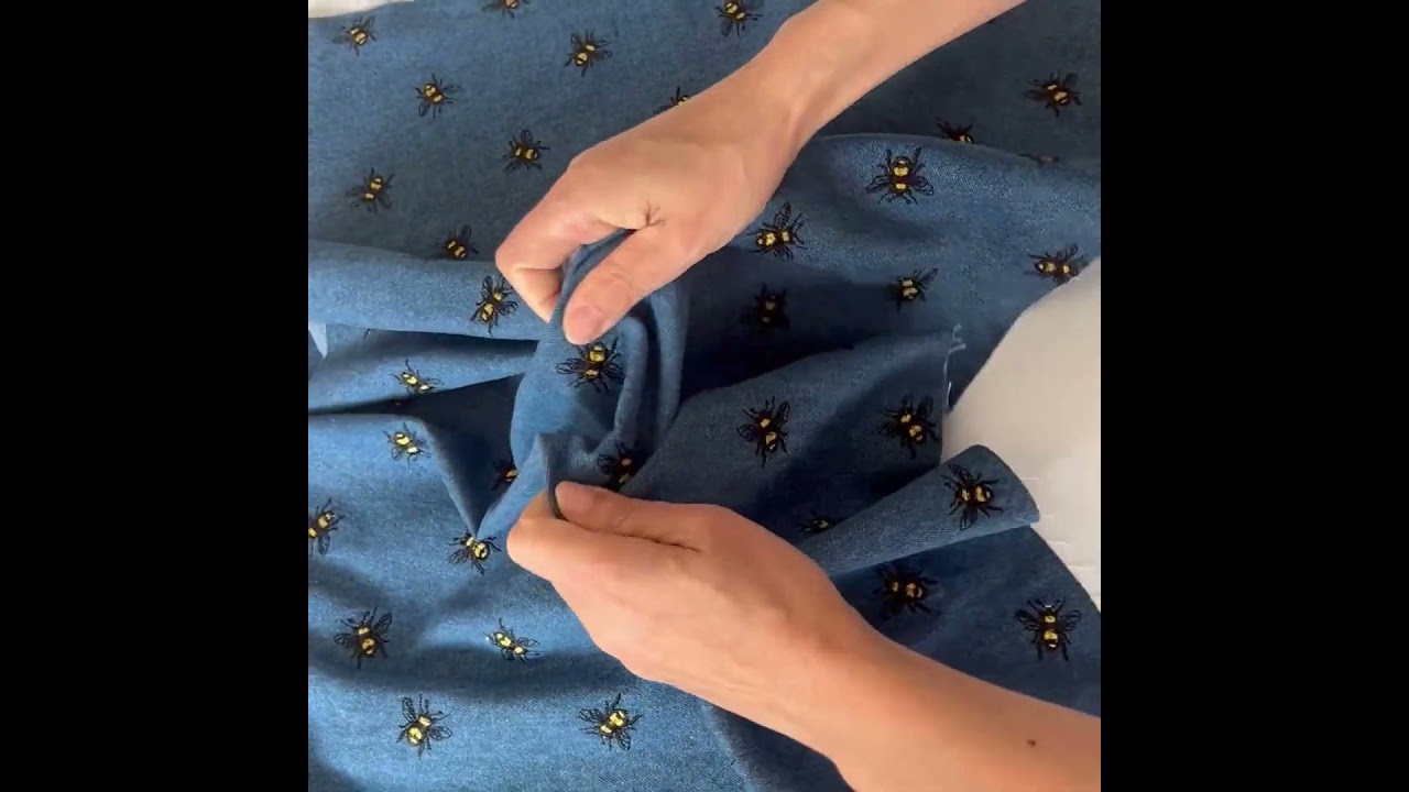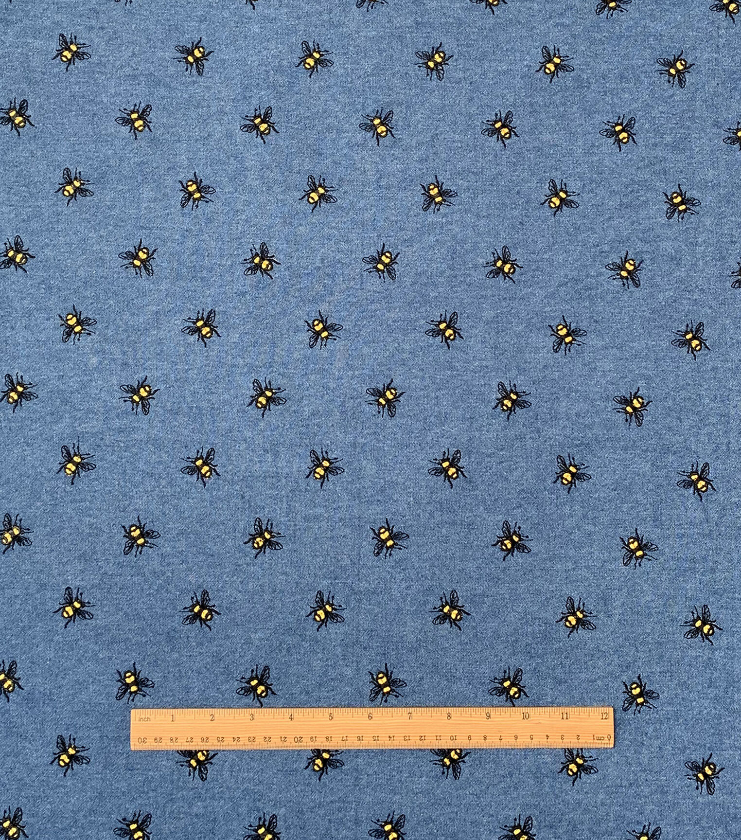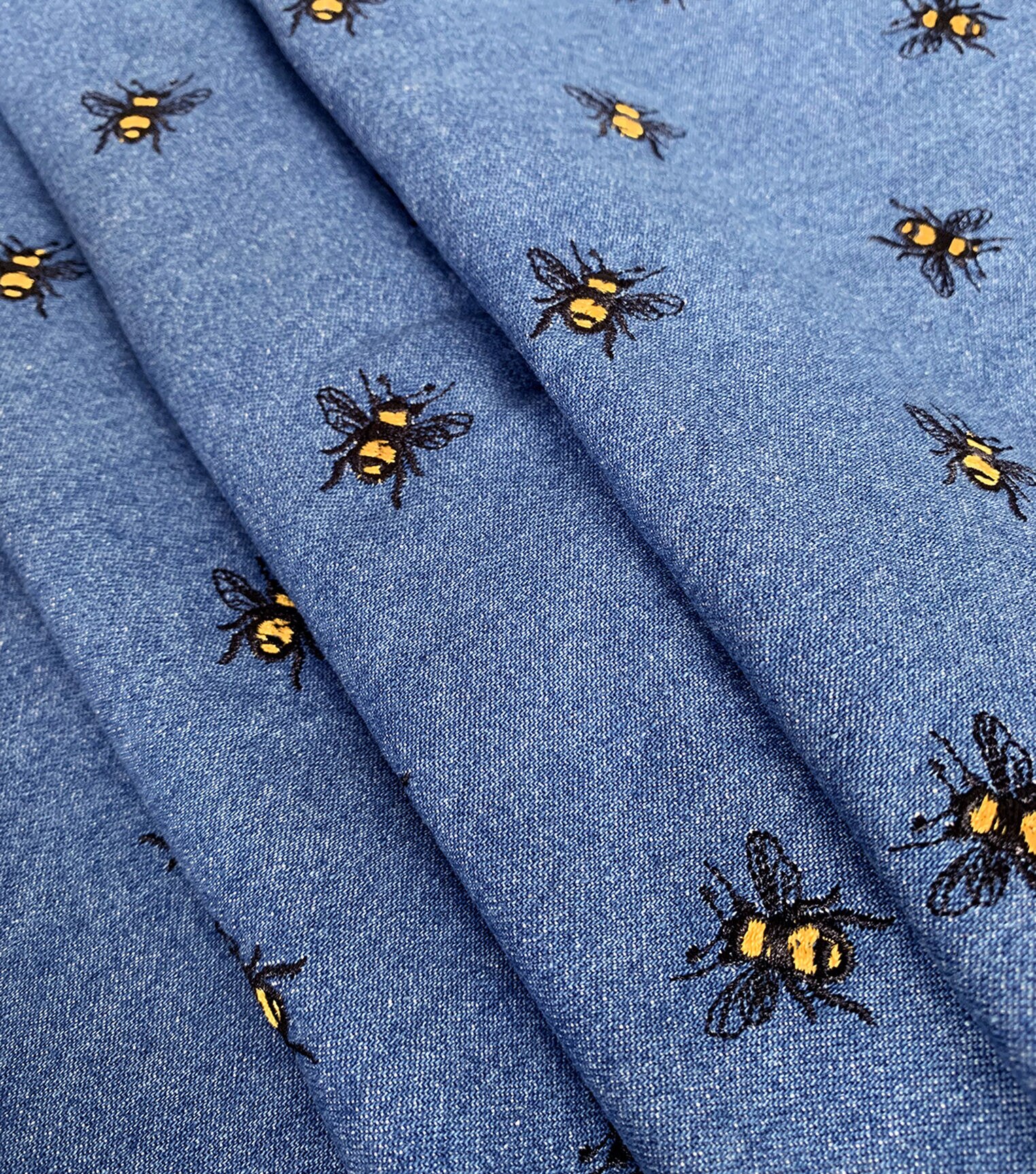 • Medium Wash Bee Printed Denim Fabric