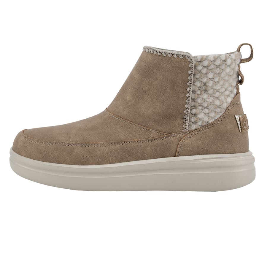 Slip into the moccasin-inspired bootie of your dreams. Mel features a soft wool upper, plush faux fur lining, and suede details. Super cozy and lightweight for ultimate comfort.