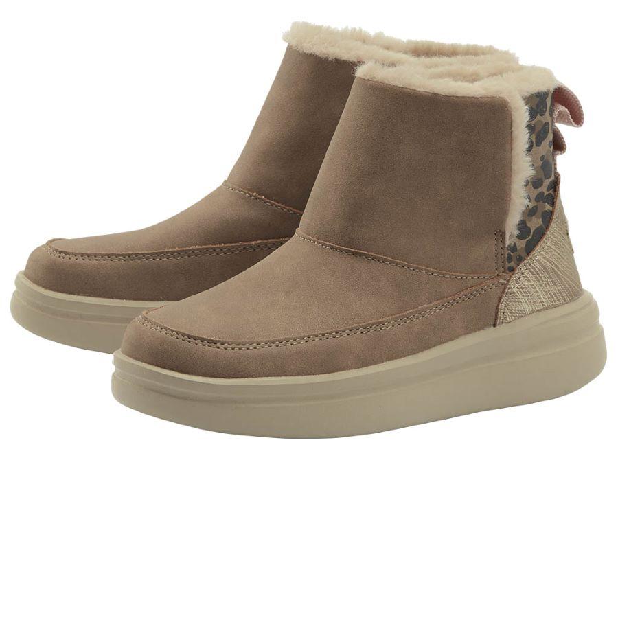 What dreams are made of. A moccasin-inspired bootie in recycled leather. Detailed with a plush faux-fur lining. Super cozy and lightweight.