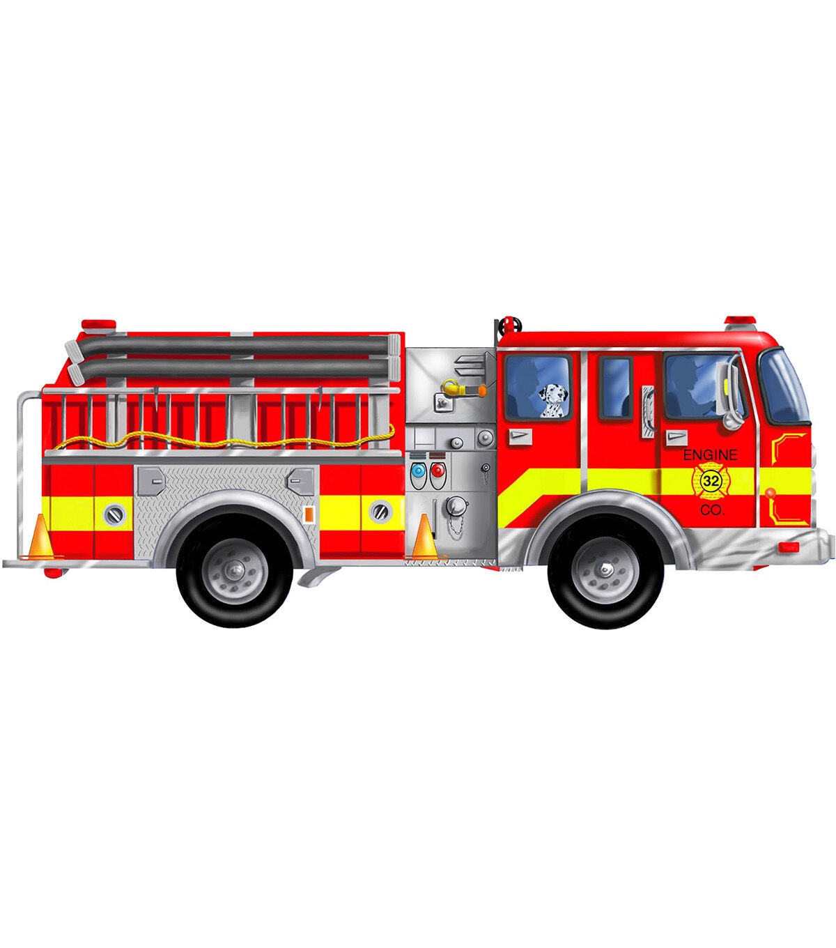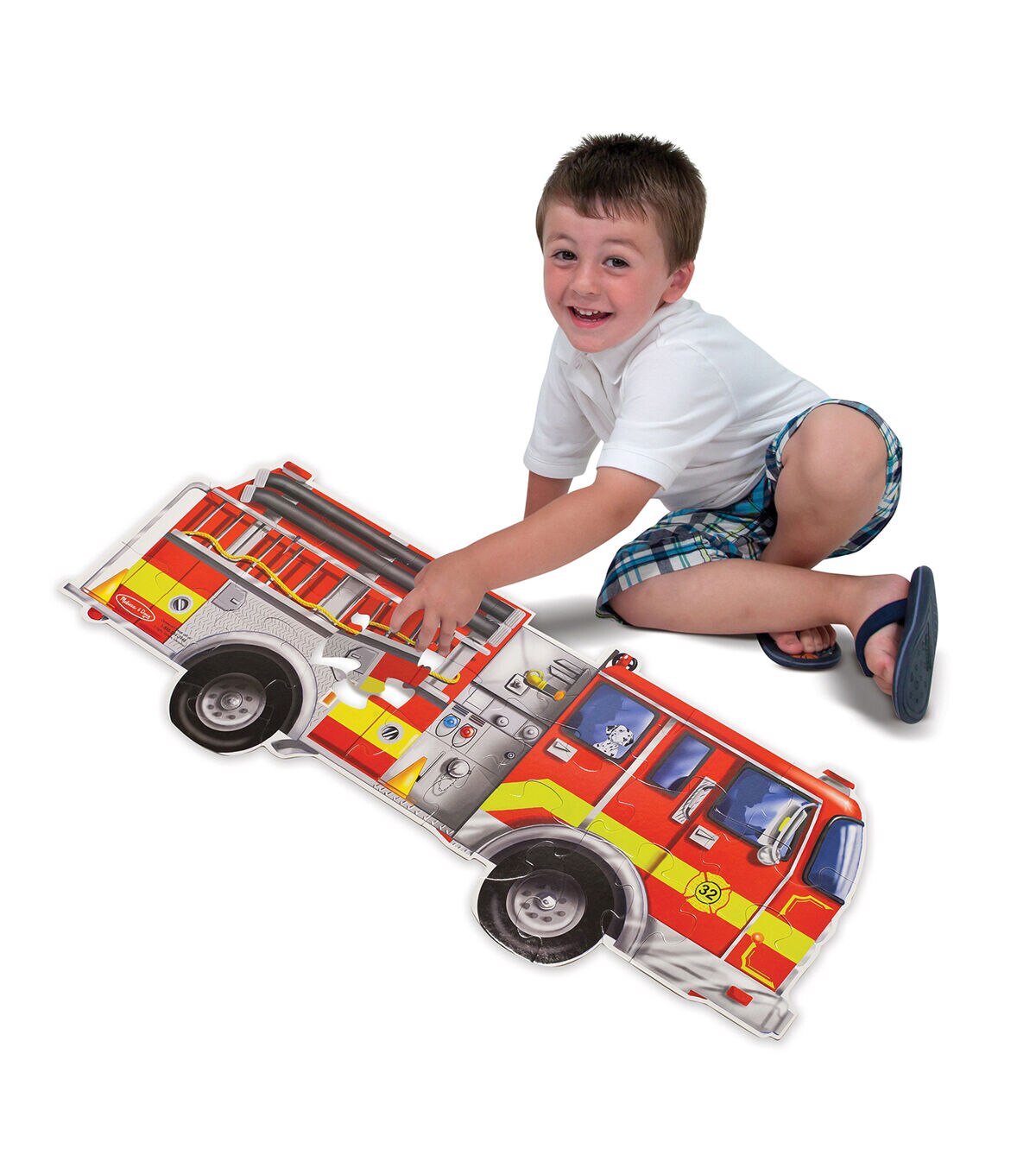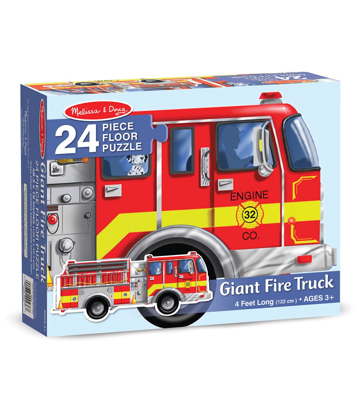 This fire truck-shaped puzzle is ready to go with only 24 cardboard pieces to complete assembly! Four feet long when assembled, the extra-thick cardboard pieces feature an Easy-Clean surface to keep them looking like new. Product: 12" H x 9.5" W x 3" L 2.3 lbs.: Package: 48"L x 18"W Assembled 2.6 lbs.