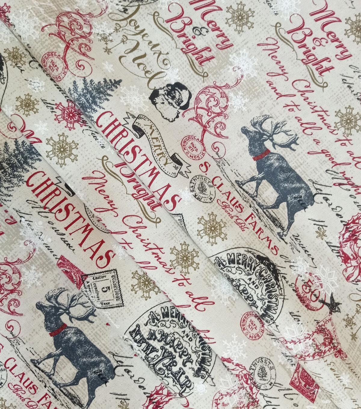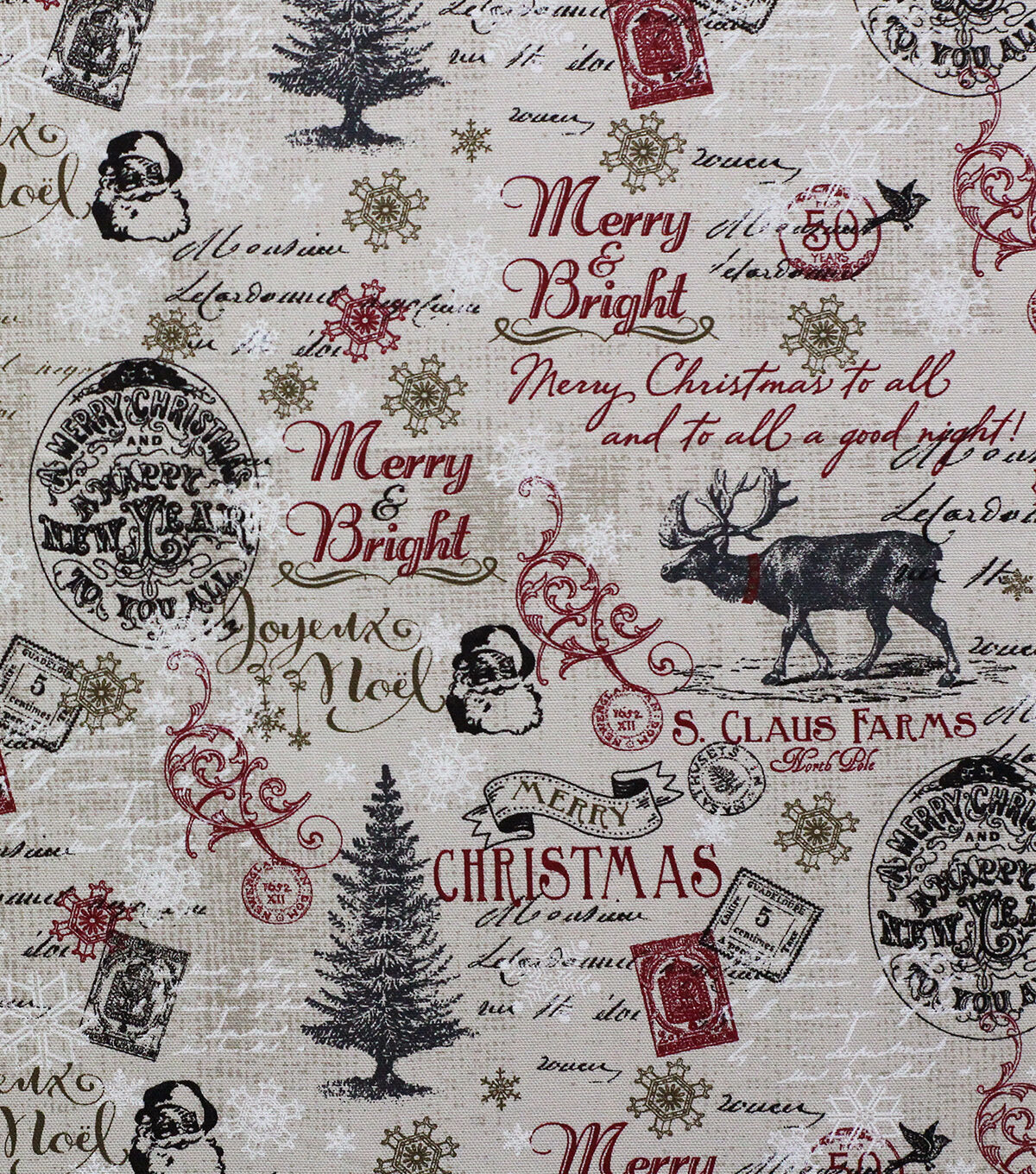 • Merry & Bright on White Canvas Christmas Cotton Fabric
