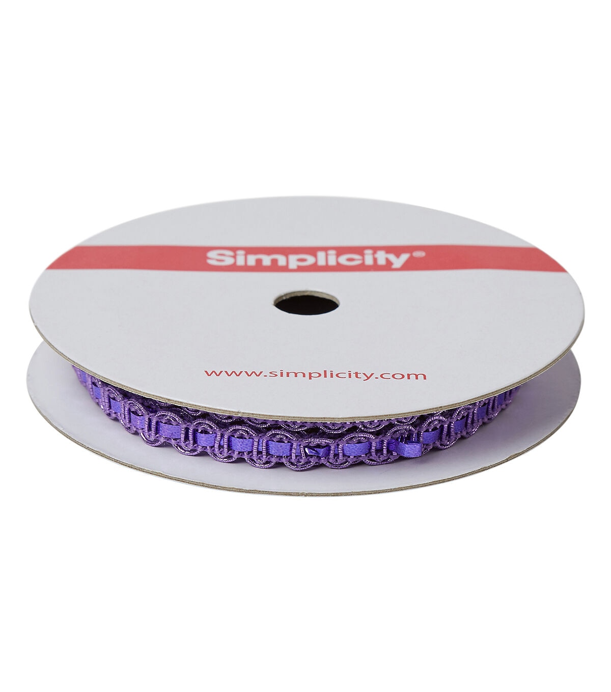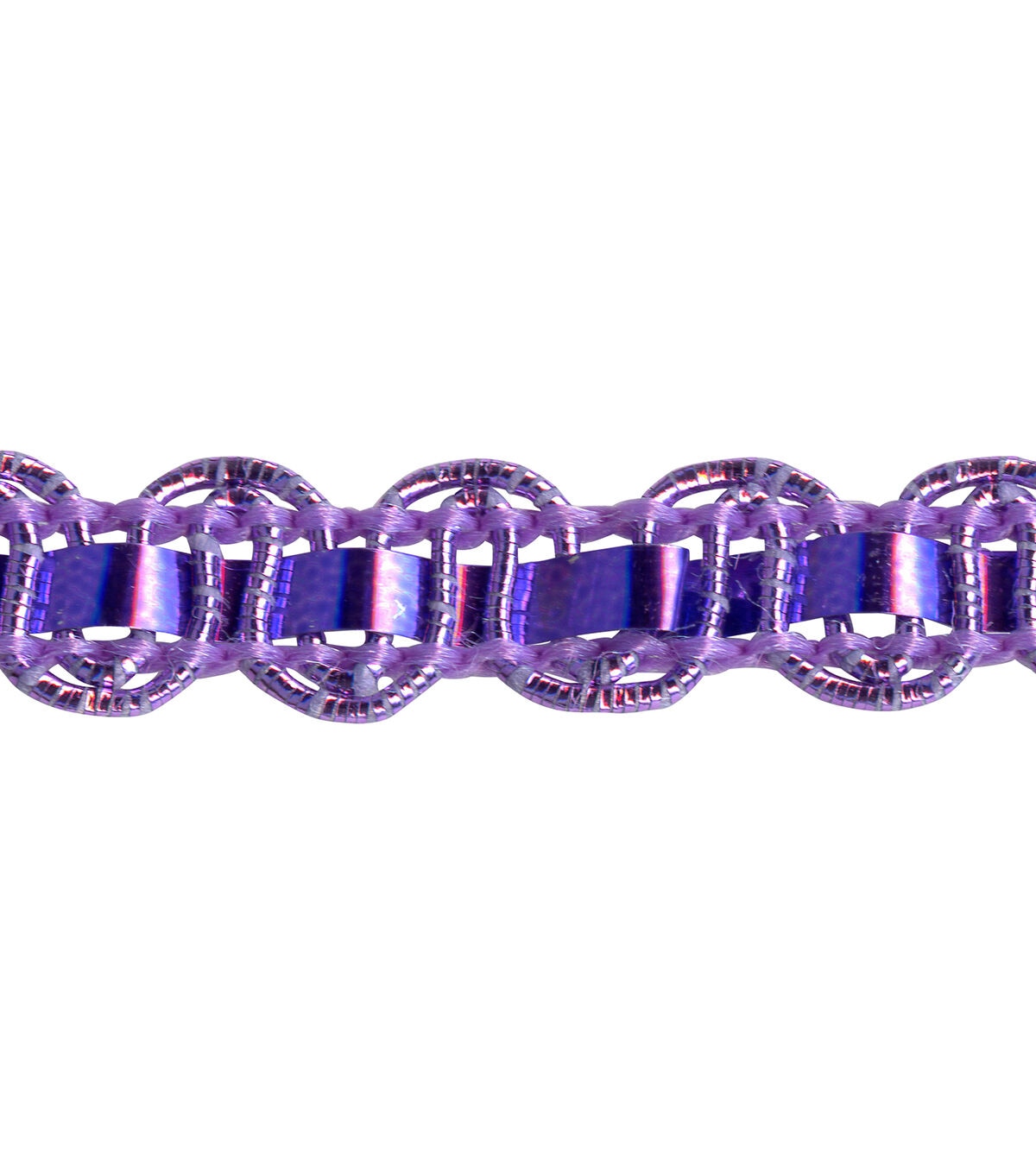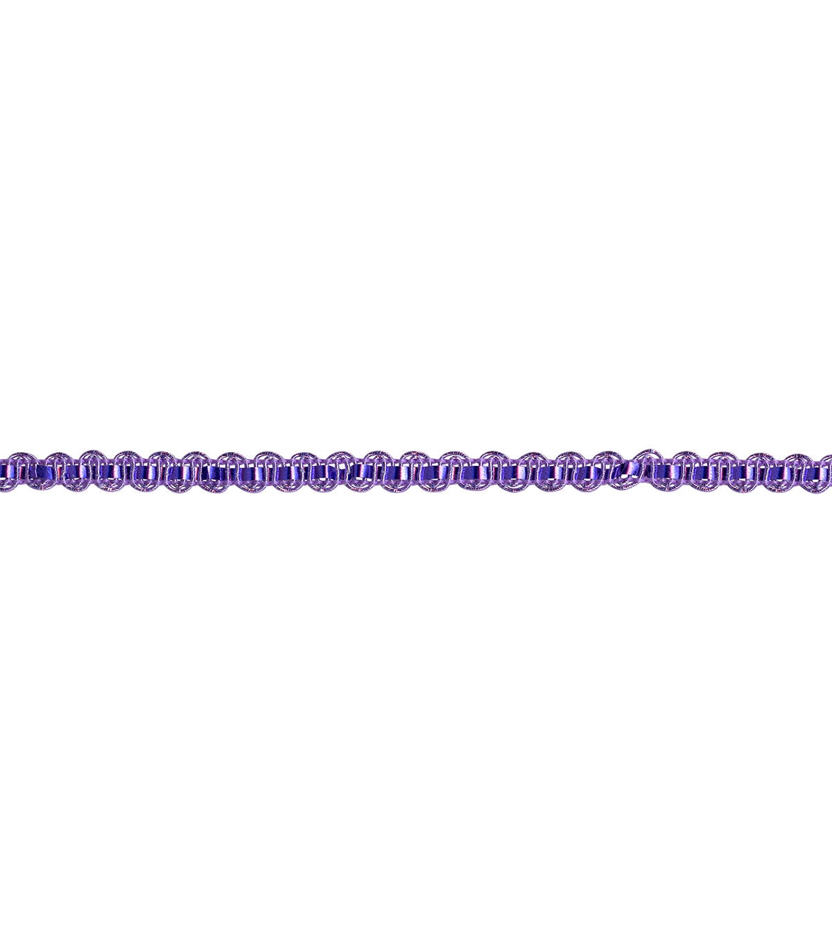 This 1/4 inch purple metallic scroll trim is a PET/cotton/polyester blend. Perfect for apparel design, home décor inspirations or any DIY design!