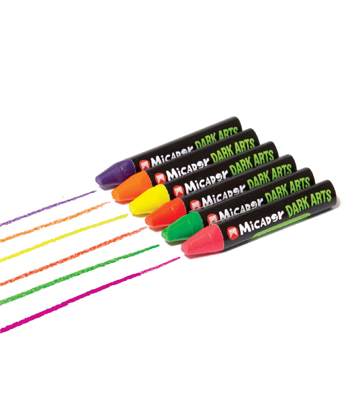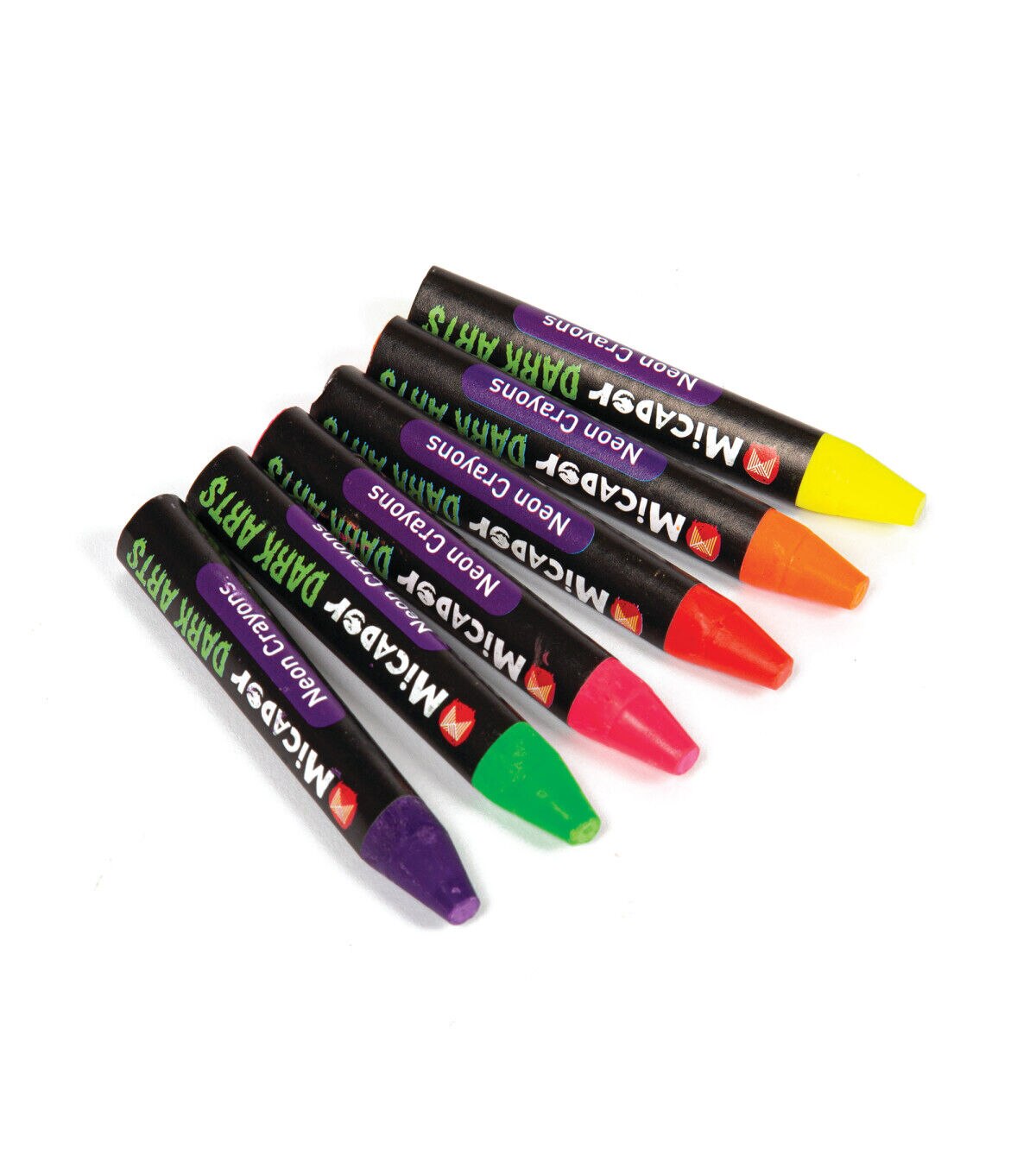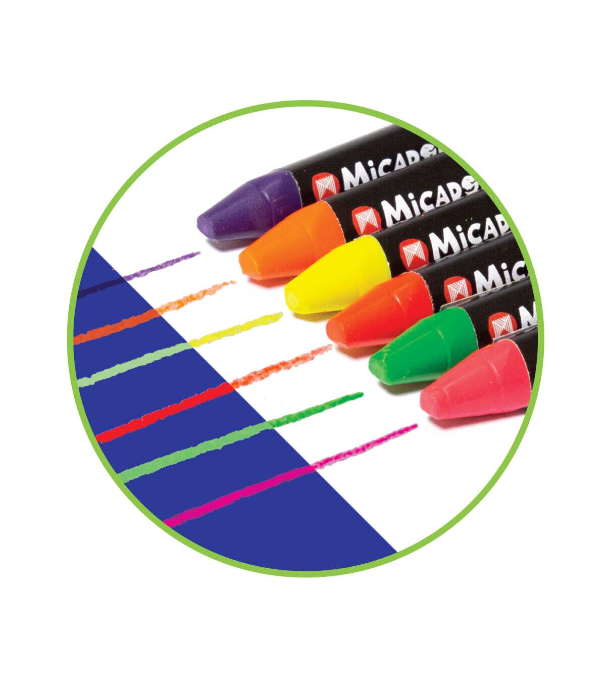 These Neon Crayons are made from beeswax and have a triangle shape for easy grip. The neon colors are extra-rich and super smooth. This set includes one each of purple, orange, yellow, red, green and pink neon crayons.