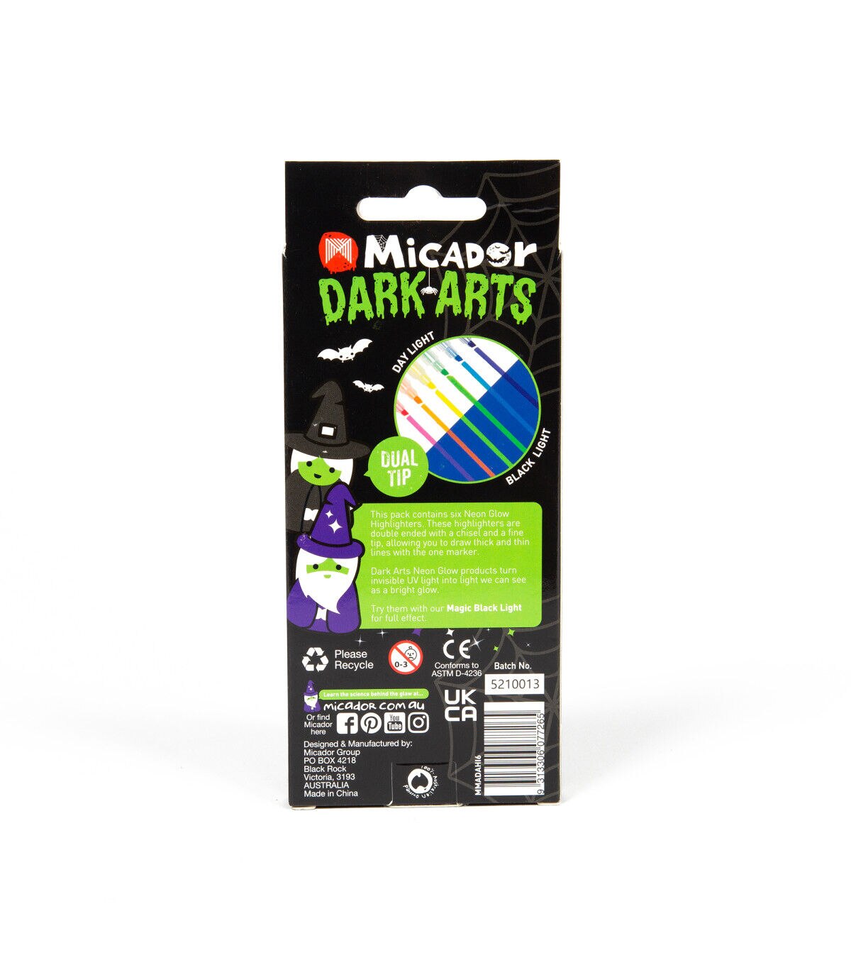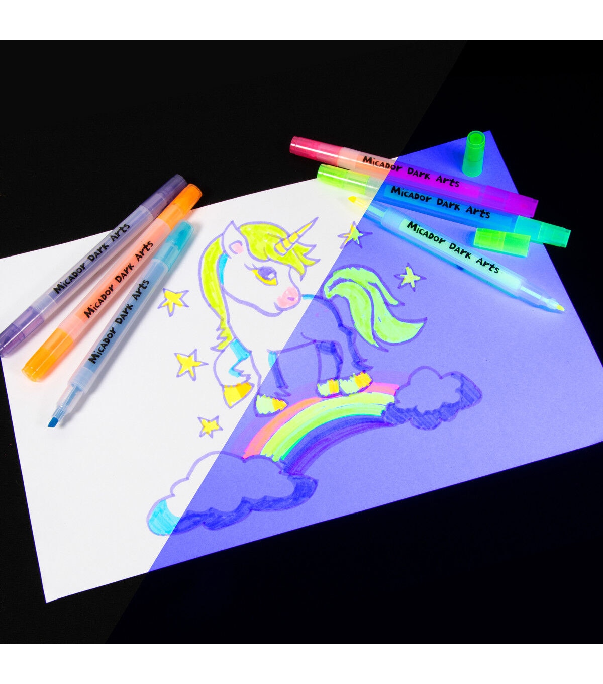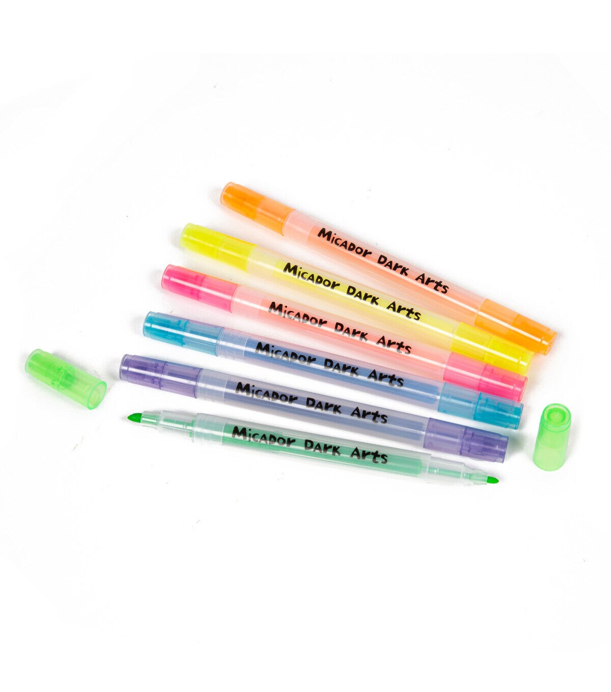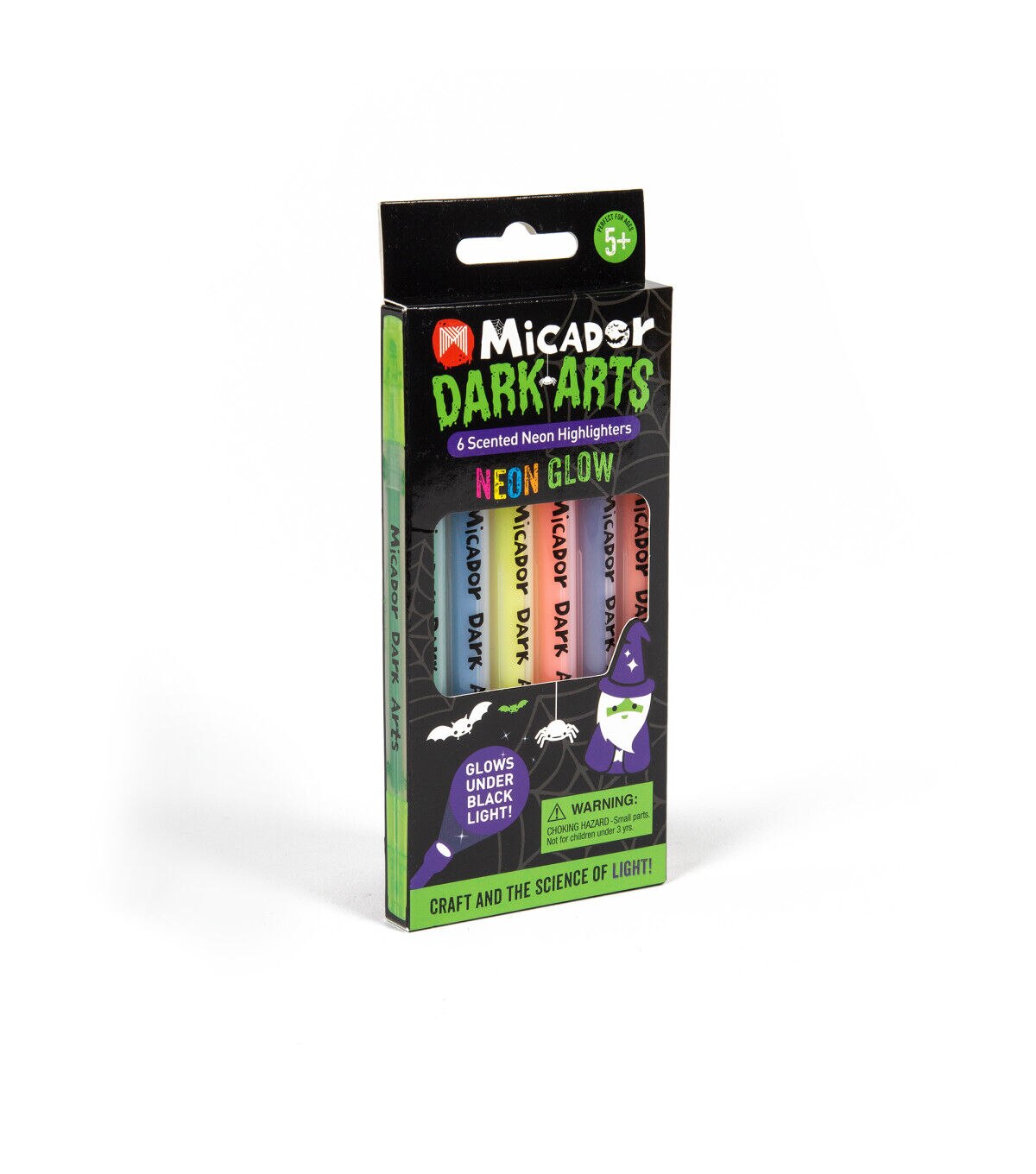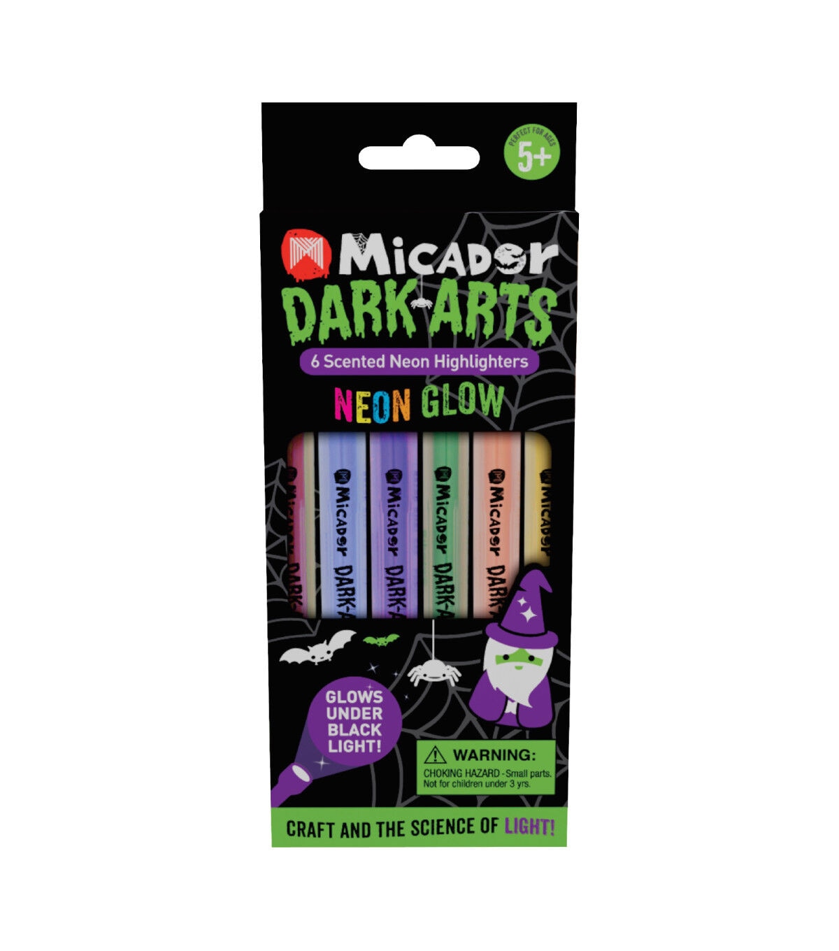 These Neon Glow Scented Highlighters from Micador Dark Arts come in six eye-popping colors with delicious smells, including grape, strawberry, orange, lemon, lime and blueberry. Dual-tip with chisel nib at one end and a fine point at the other. Use Magic Black Light to make them glow for full effect. Young artists love the glowing effects and the smell of the highlighters. When you need to highlight something, these markers are always a fun option!