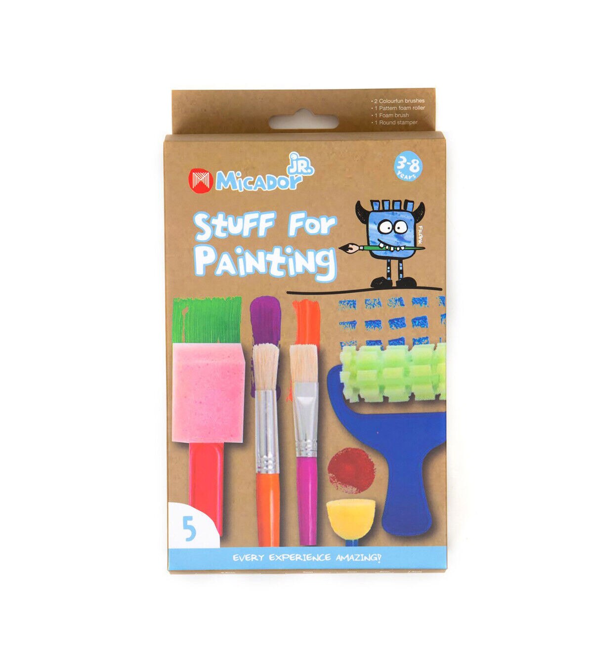 This Stuff for Painting Set has everything children need to unleash their creativity. The kid-friendly and fun accessories include one flat Colorfun paint brush, one round Colorfun paint brush, one patterned foam roller (75mm), one foam brush (50mm) and one round stamp roller.