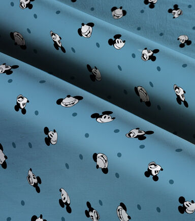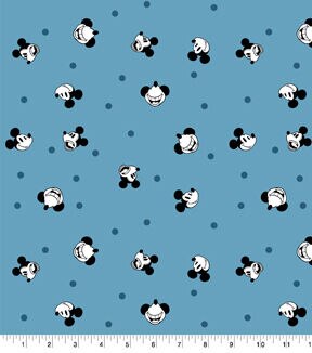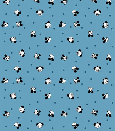 this Mickey Geo Dots cotton fabric is filled with Mickey mouse heads surrounded by a blue background and dark blue dots. This fabric would be perfect for pillow covers or a throw blanket. This fabric is machine washable and perfect for any craft.