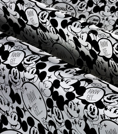 This Mickey Minnie Aww Shucks Pack is black and white fabric with Minnie and Mickey. This fabric would go with so many different things which makes it super versitile to use to craft a throw blanket or even pillow covers. This is 100% fabric and it is machine washable.
