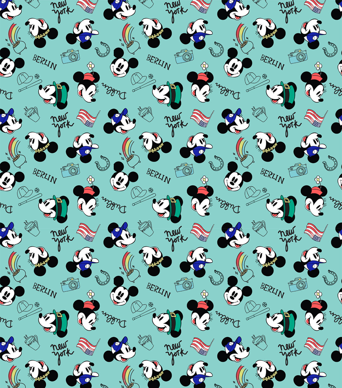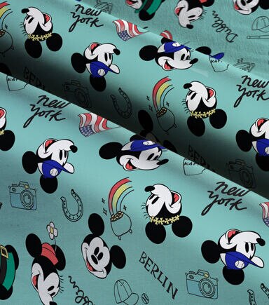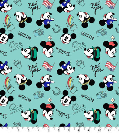 Mickey Minnie Travel Heads Toss Disney Cotton Fabric