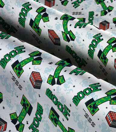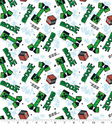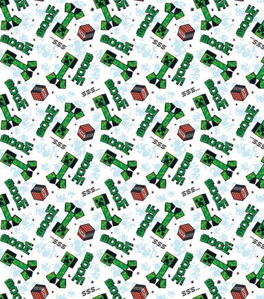 This Minecraft Creeper Explode fabric is filled with Creepers and TNT. This fabric would be perfect for any Micraft fan. You could craft a throw blanket or any bedding you would want. This fabric is 100% Cotton and machine washable.