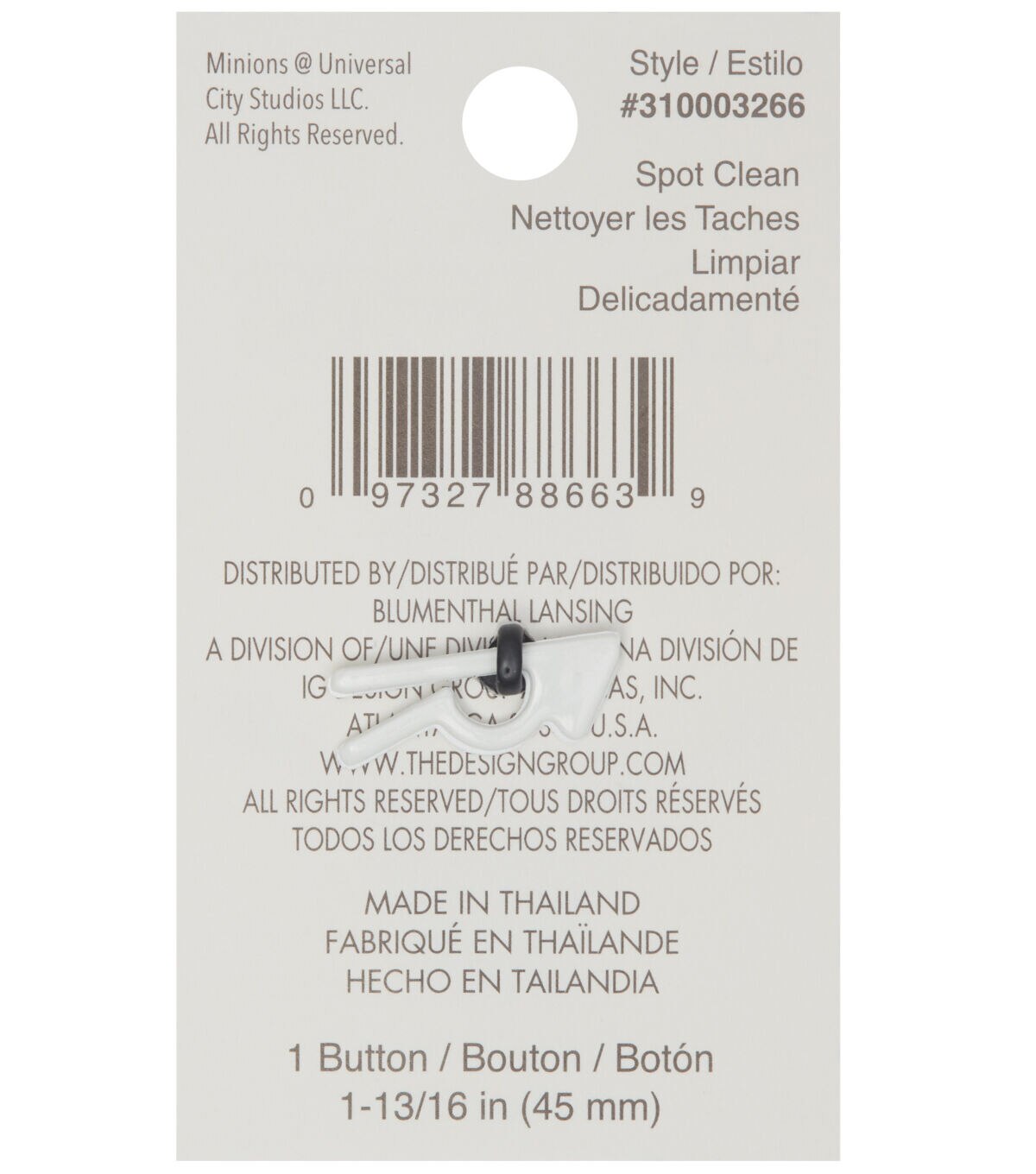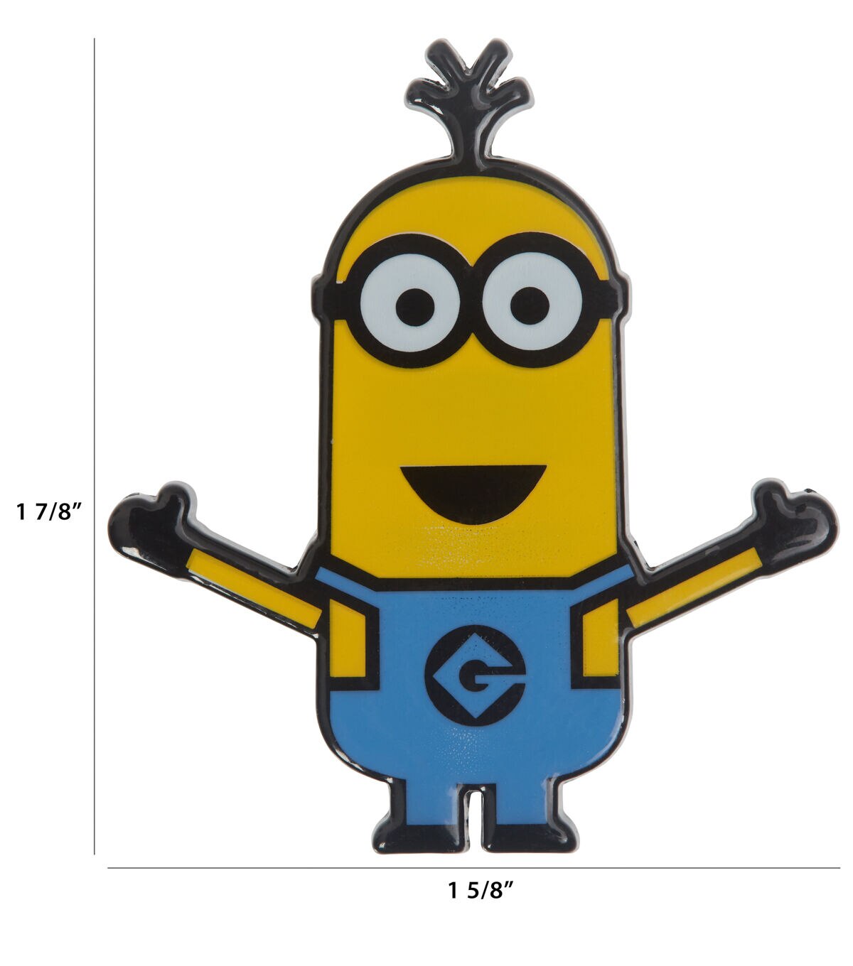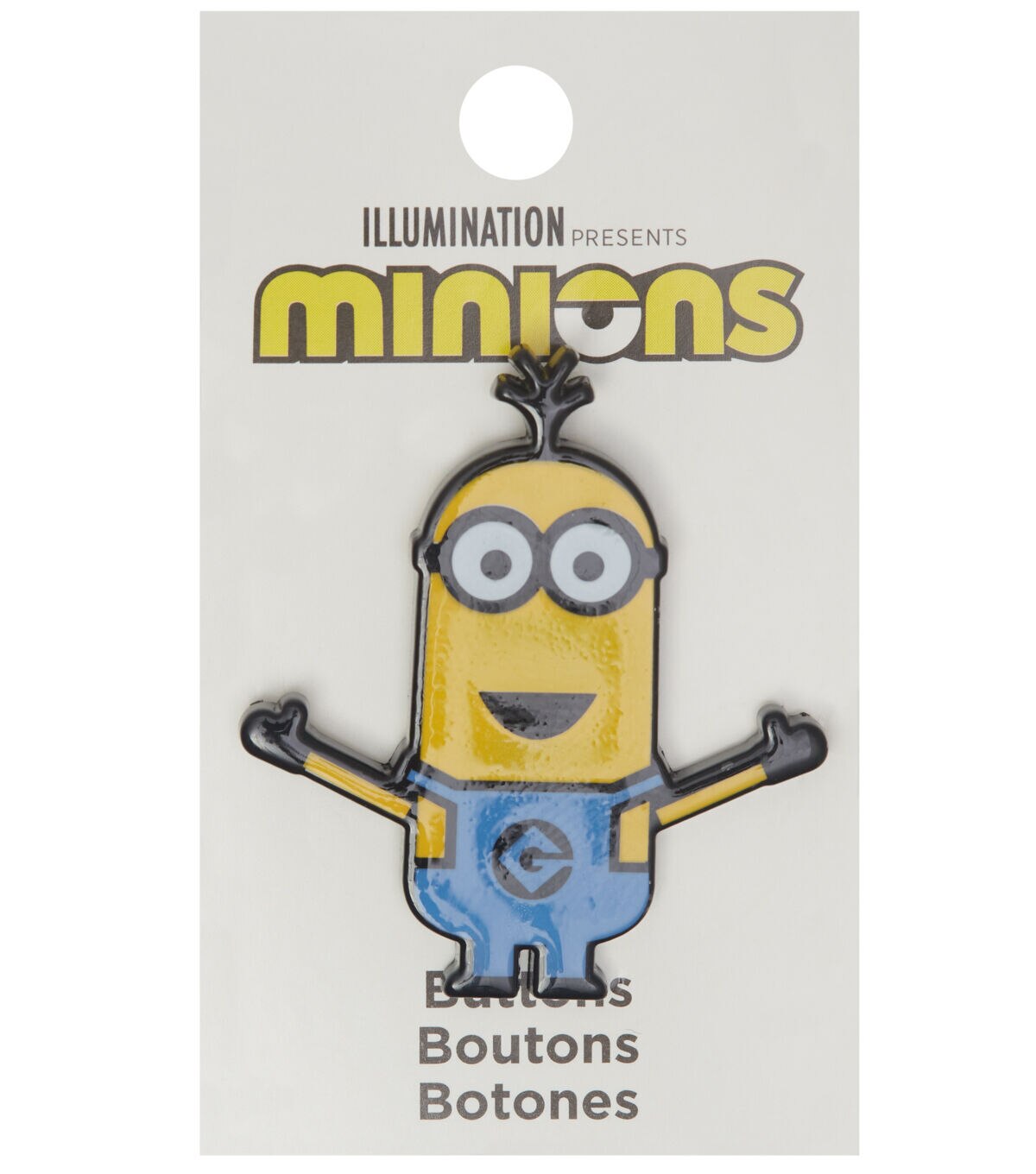 Liven up a denim jacket, sweater or tee with the Blumenthal Lansing Minions Kevin Enamel Shank Button - Multi. This enamel button resembles the minion Kevin with outstretched arms and sports yellow and blue hues. You can also sew it onto a bag, cap or beanie and gift that to a minion fan.