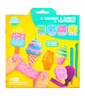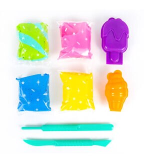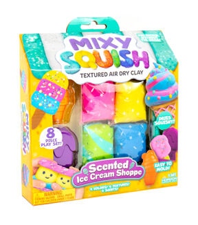 I scream, you scream, we all scream for the Mixy Squish Scented Ice Cream Shoppe! Transform airy, fluffy clay into a world of squishy, sweet, textured fun! With 2 oz. of pre-made, pre-textured Mixy Squish colors with super-sweet scents and tons of crunchy add-ins plus 2 sculpting tools and 2 sweet treat molds, creative sensory fun takes on a whole new meaning! Bring out the magic in your Mixy Squish by kneading it with your hands for a minute or two softening the clay makes it easier to use! Then, jump right in and start creating! Follow the fully-illustrated instruction booklet to learn how to use your sculpting tools and molds to make the sweetest details and treats from ice cream cones to popsicles and even s'mores. Or, use your hands to roll and press your Mixy Squish into super squishy shapes of your own! After making your magical creations, let the air-dried squishiness take the lead. Your creations will be completely dry in 24-48 hours but they'll stay soft and spongy! Feel like adding more details after your creations dry? Use markers or paint to decorate, or add more clay on top for layers of fun! Mixy Squish air-dry clay is gluten free, non-toxic, and made with high quality, kid-friendly ingredients.