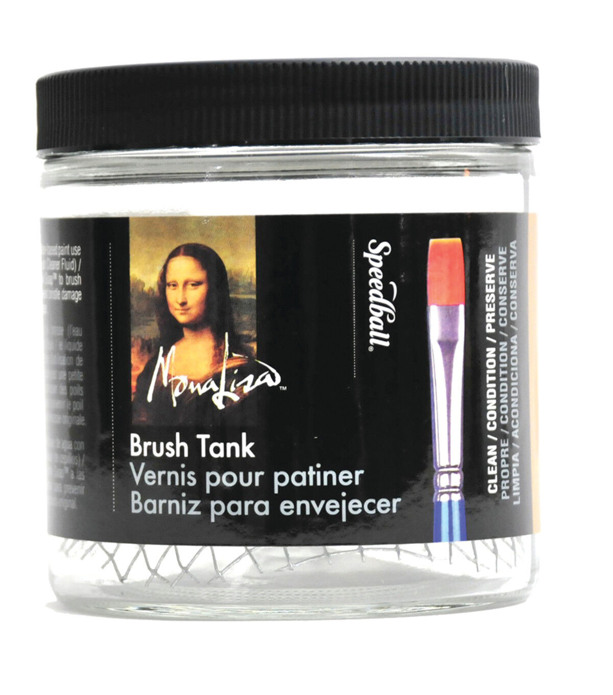 Brush Cleaning Tank can be used for all types of artist oil paints, varnishes and enamels. Use this tank to preserve the life of your brushes. The cleaning tank consists of a glass jar with a metal screen inside to aid in loosening paint from your brushes. The tank can be filled with cleaner and then closed securely with screw on lid.