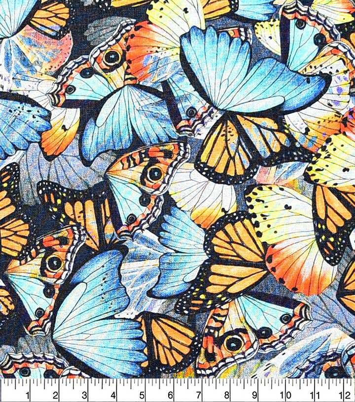 • Monarchs & Blue Butterflies Novelty Print Fabric