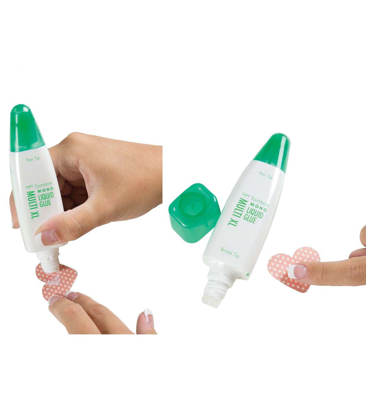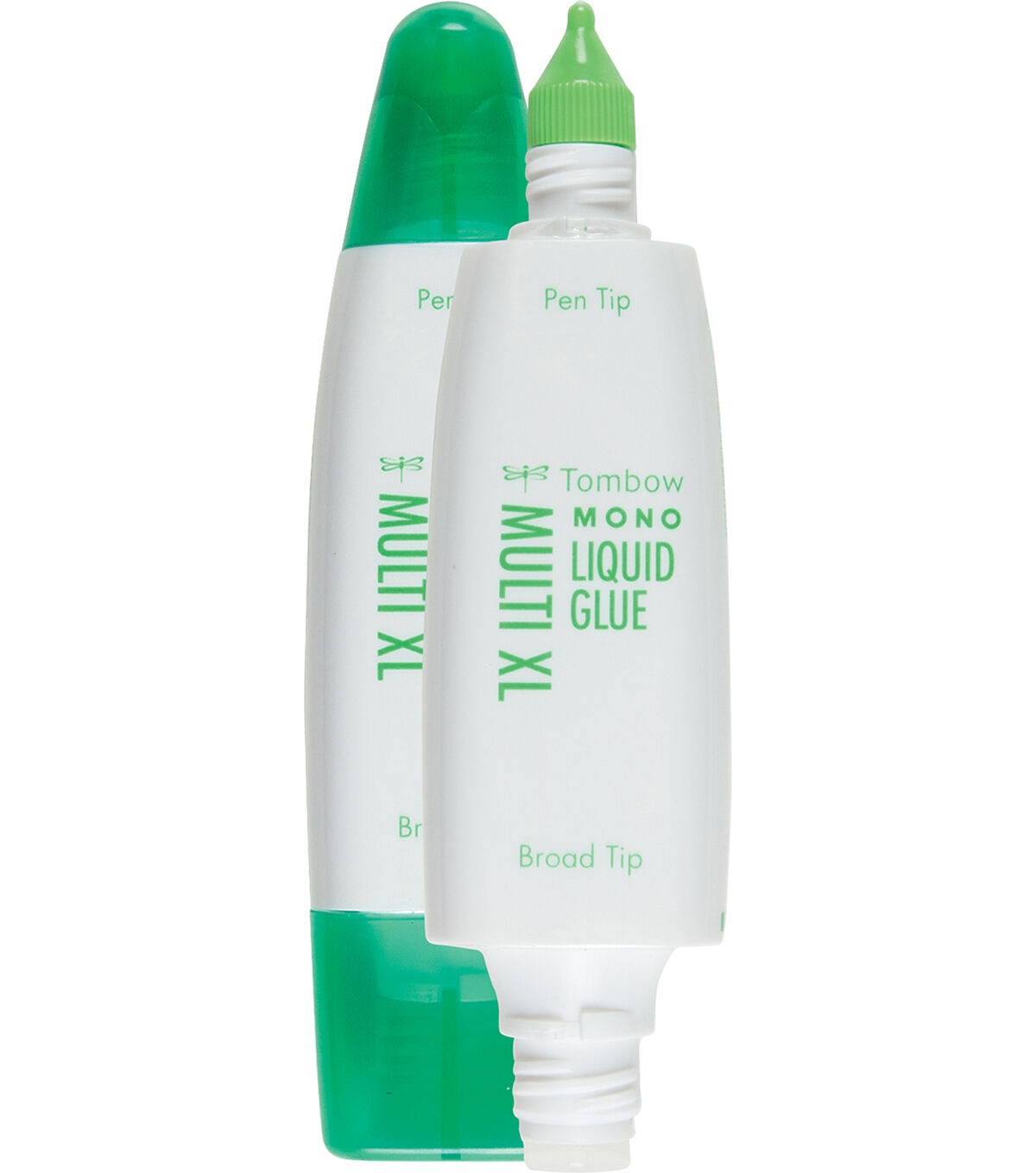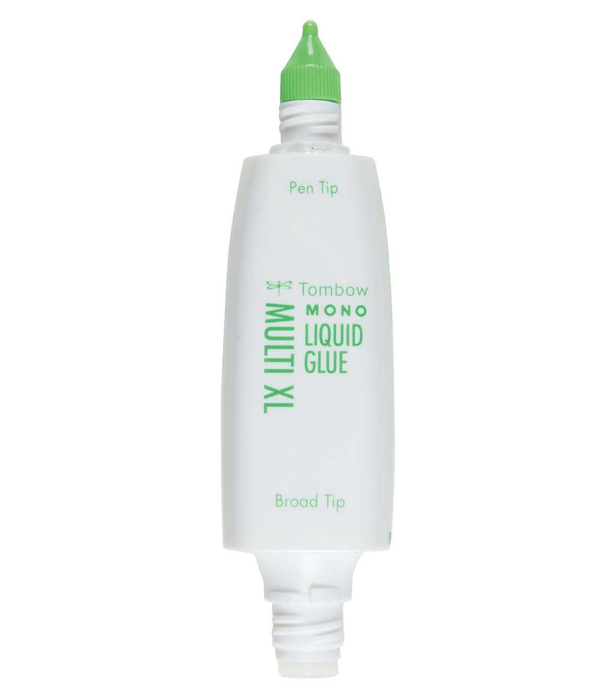 Tombow-Mono Multi XL Liquid Glue Carded. Strong permanent bond or repositionable bond in one applicator. Use for photos, posterboard, cardboard, paper and more! This package contains one 1.76oz liquid glue applicator with one pen tip and one broad tip. Imported.