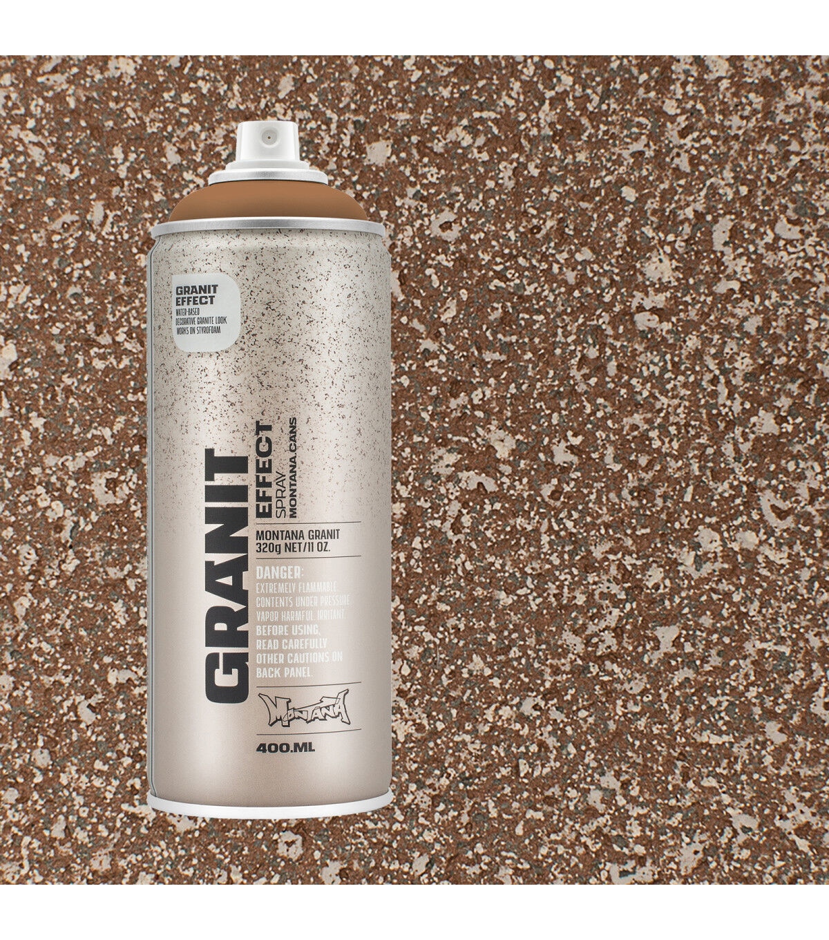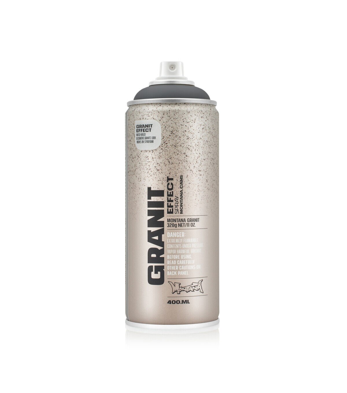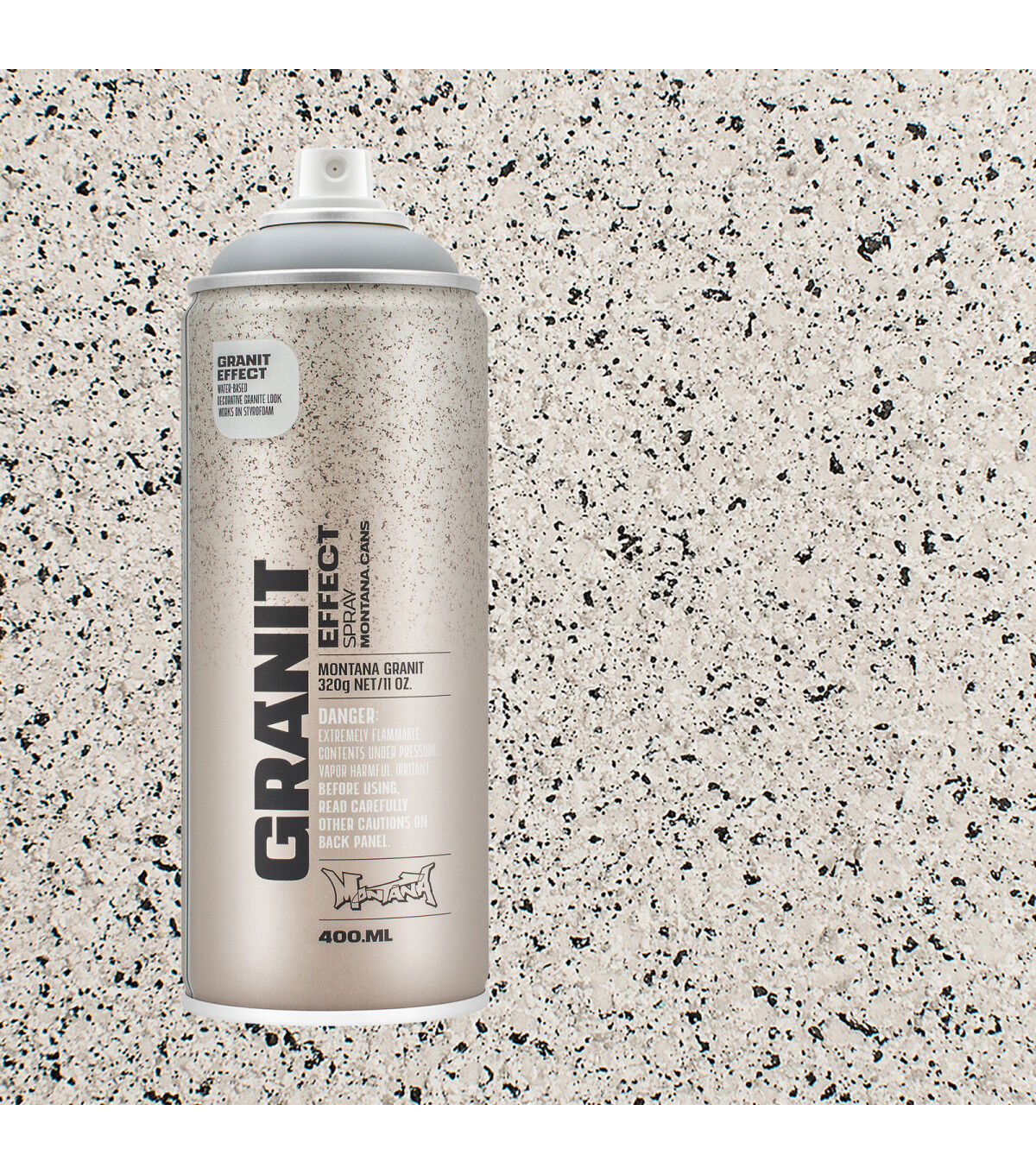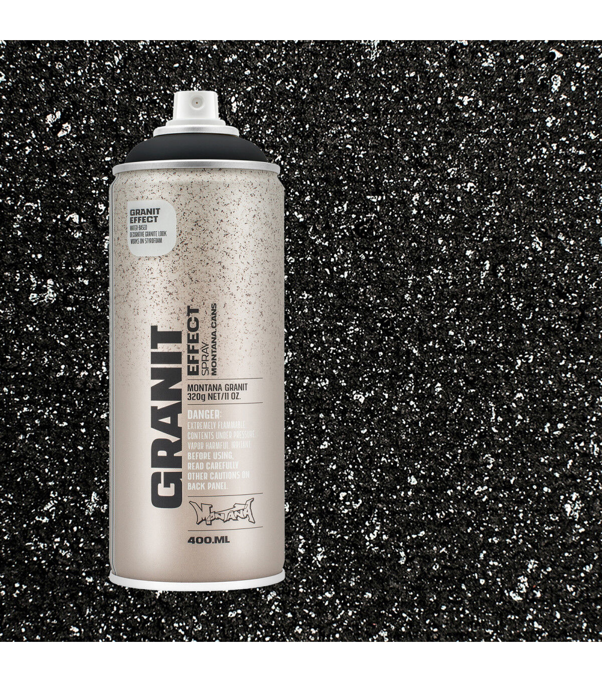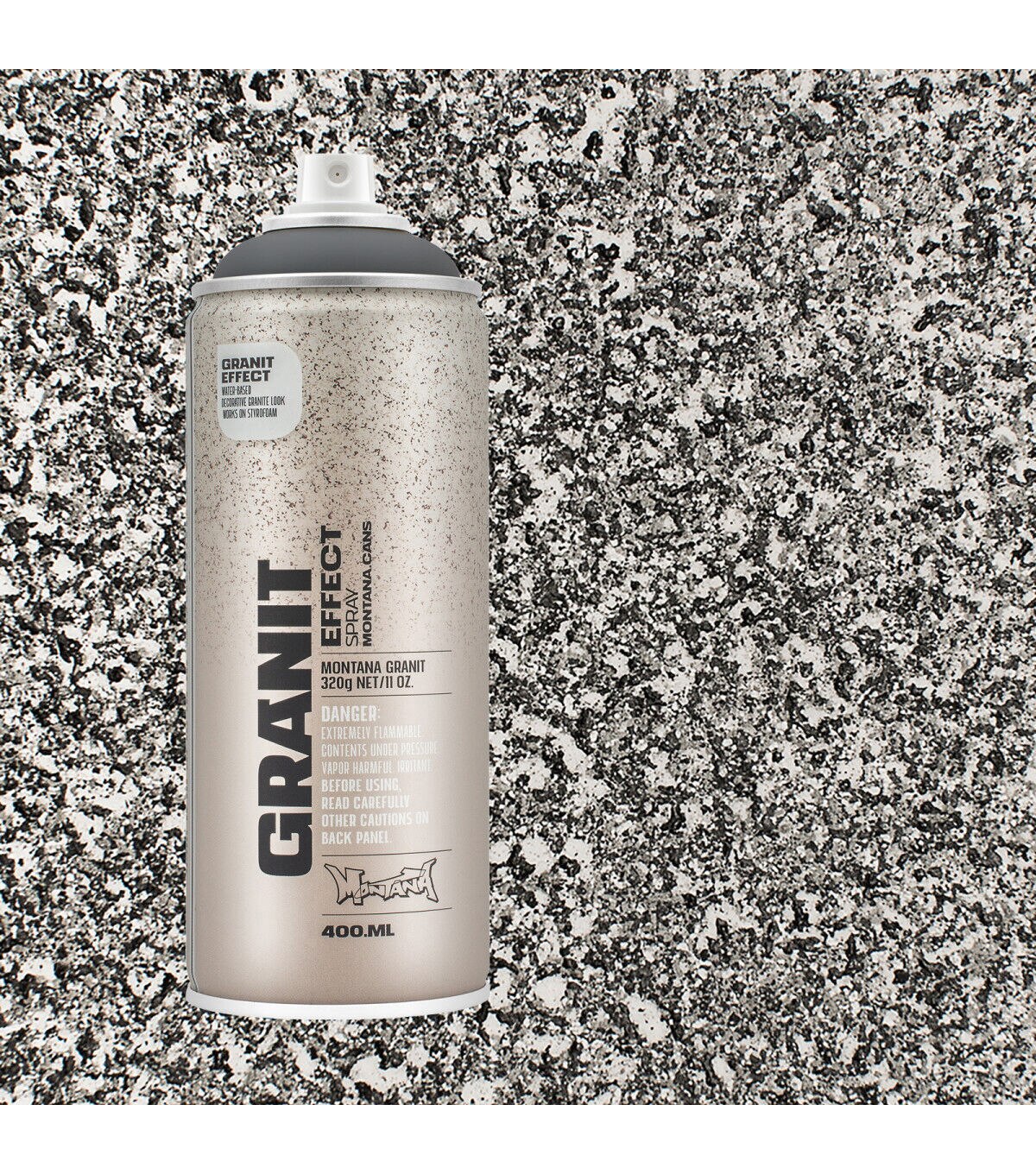 Water-based special effect spray paint with fine plastic particles for a deceivingly realistic granite effect. Applicable on many different surfaces such as paper, cardboard, primed canvas, wood, glass, metal, ceramics, porcelain, stone, polystyrene and other paintable acrylic materials. The Montana GRANIT Effect is very high covering. For best results, prime your surface when using light colored GRANIT Effect shades, particularly when painting on dark surfaces. We recommend using the Montana PRIMER or the Montana TEXTURE spray. The latter will enhance the GRANIT look even more. Can be top-coated once thoroughly dry. Can be combined with Montana GOLD, Montana ACRYLIC markers and standard acrylic paints.