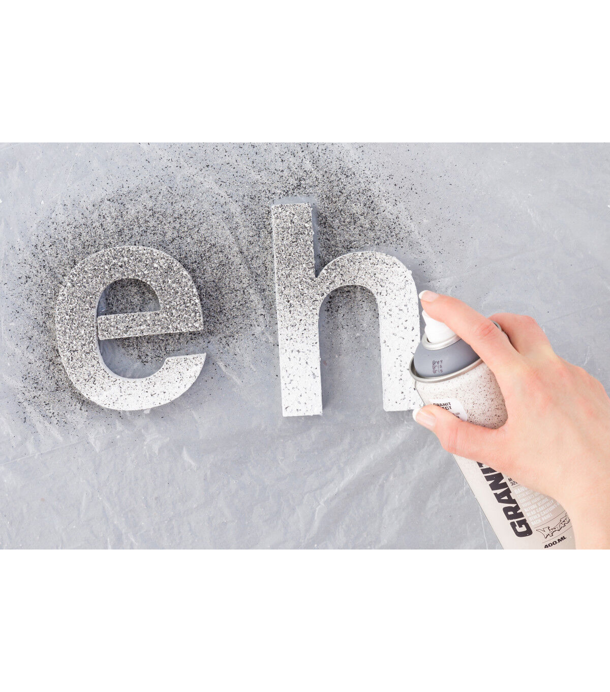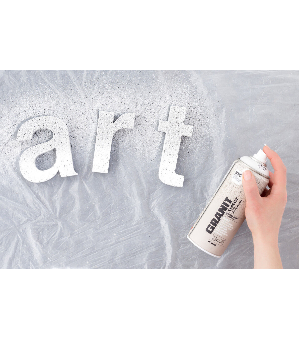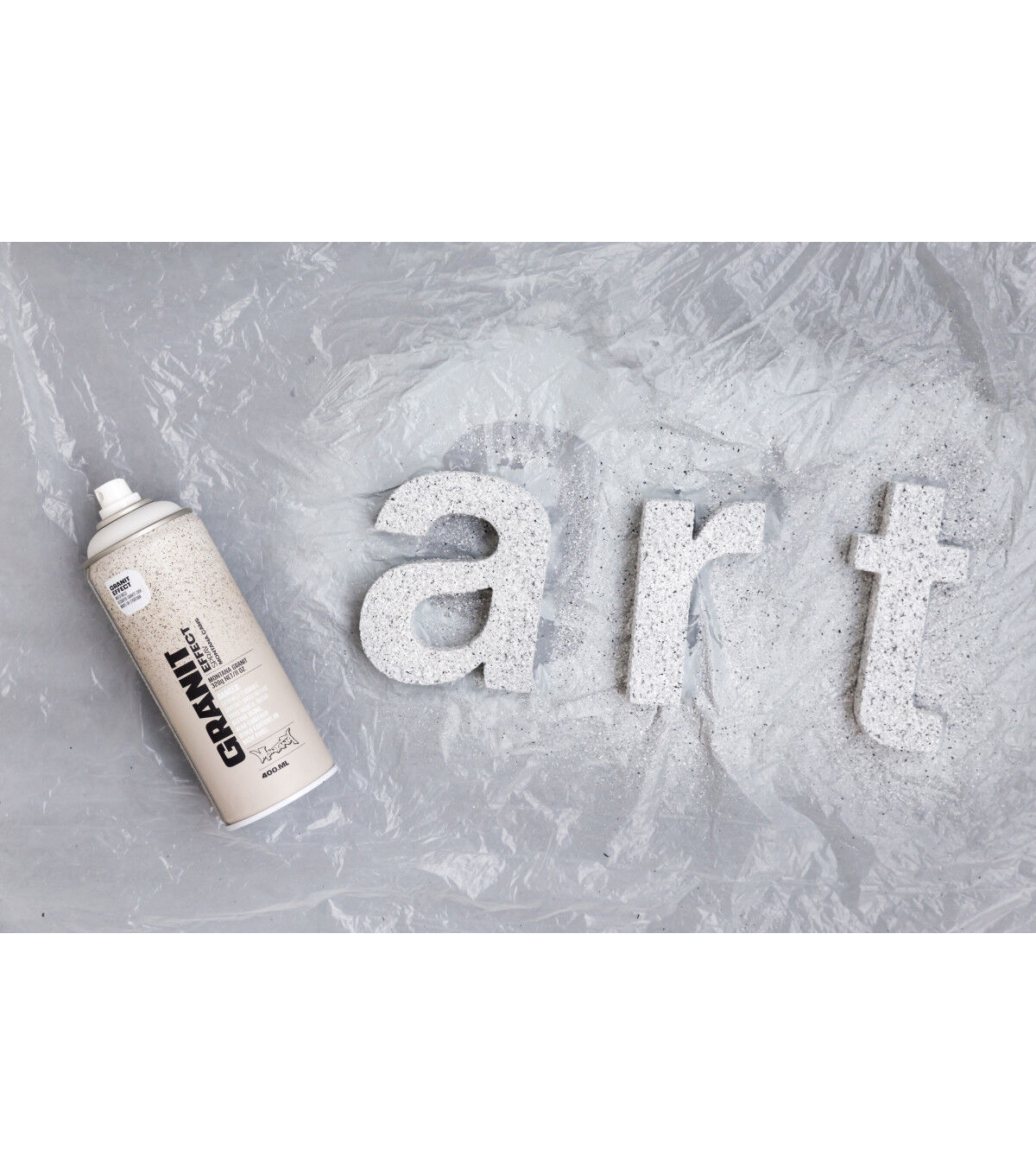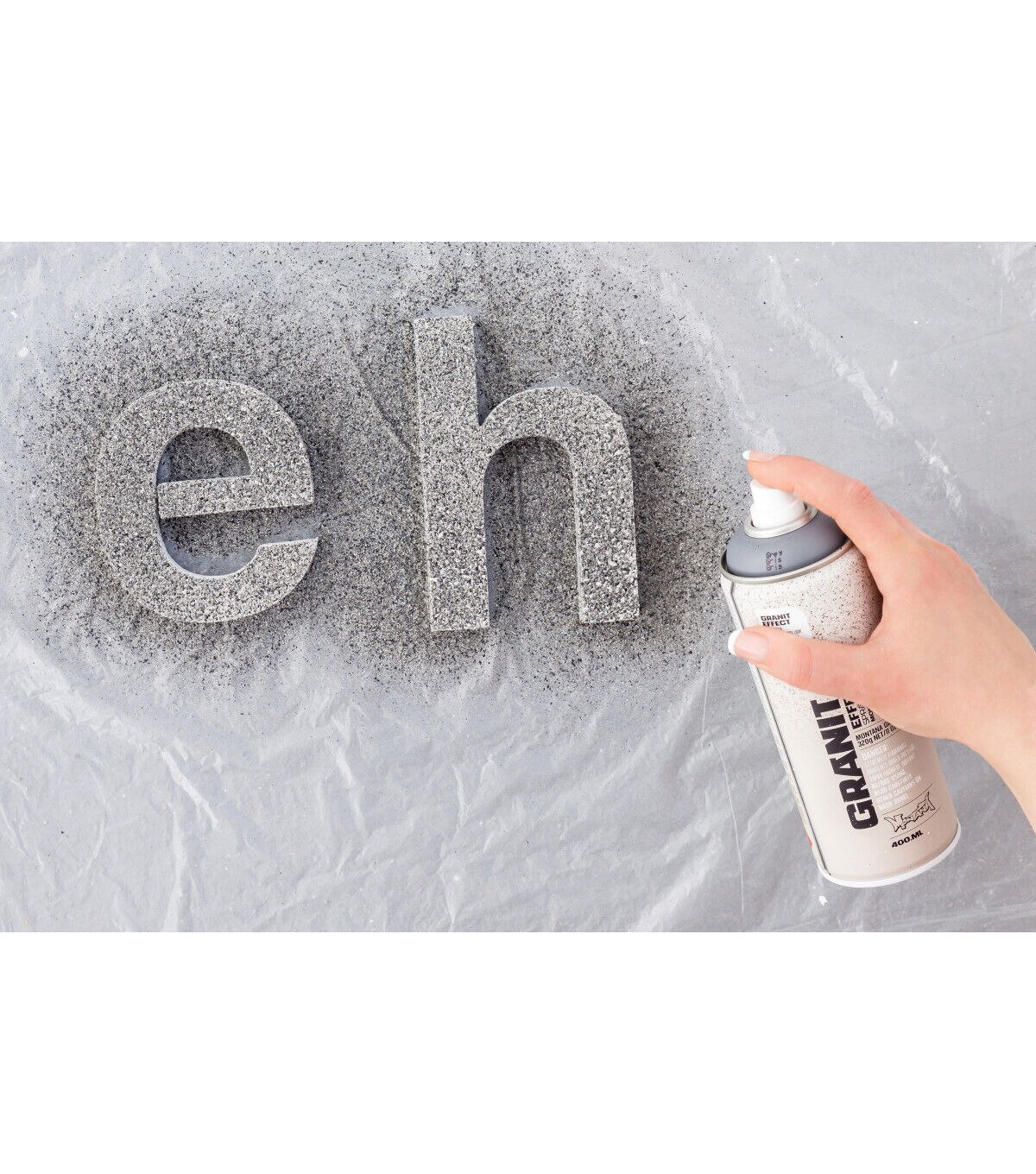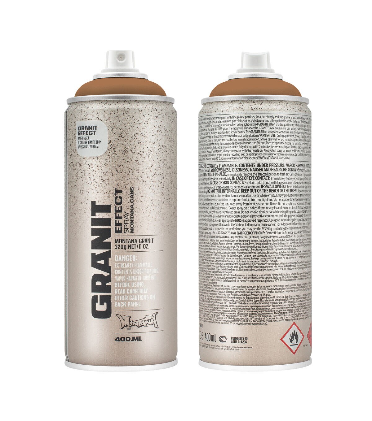 Water-based special effect spray paint with fine plastic particles for a deceivingly realistic granite effect. Applicable on many different surfaces such as paper, cardboard, primed canvas, wood, glass, metal, ceramics, porcelain, stone, polystyrene and other paintable acrylic materials. The Montana GRANIT Effect is very high covering. For best results, prime your surface when using light colored GRANIT Effect shades, particularly when painting on dark surfaces. We recommend using the Montana PRIMER or the Montana TEXTURE spray. The latter will enhance the GRANIT look even more. Can be top-coated once thoroughly dry. Can be combined with Montana GOLD, Montana ACRYLIC markers and standard acrylic paints.