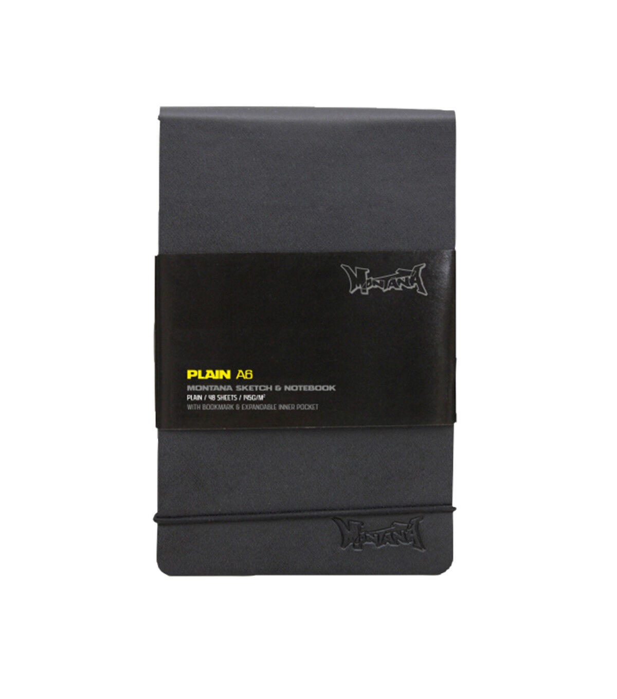 Small and handy, this 5.5" x 3.5" black hardcover book has the Montana logo imprinted on the front cover and includes an elastic strap for the safe keeping of loose items. A pocket on the inside back cover provides space for business cards, tickets, clippings and more. This plain book contains 48 sheets of blank 145g/m2 paper and also includes a practical ribbon placeholder.