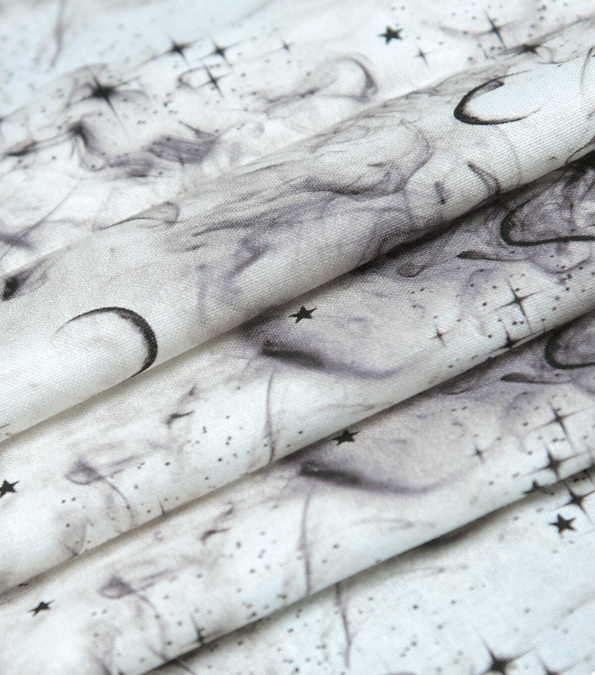 • Moons & Smoke on White Cotton Fabric