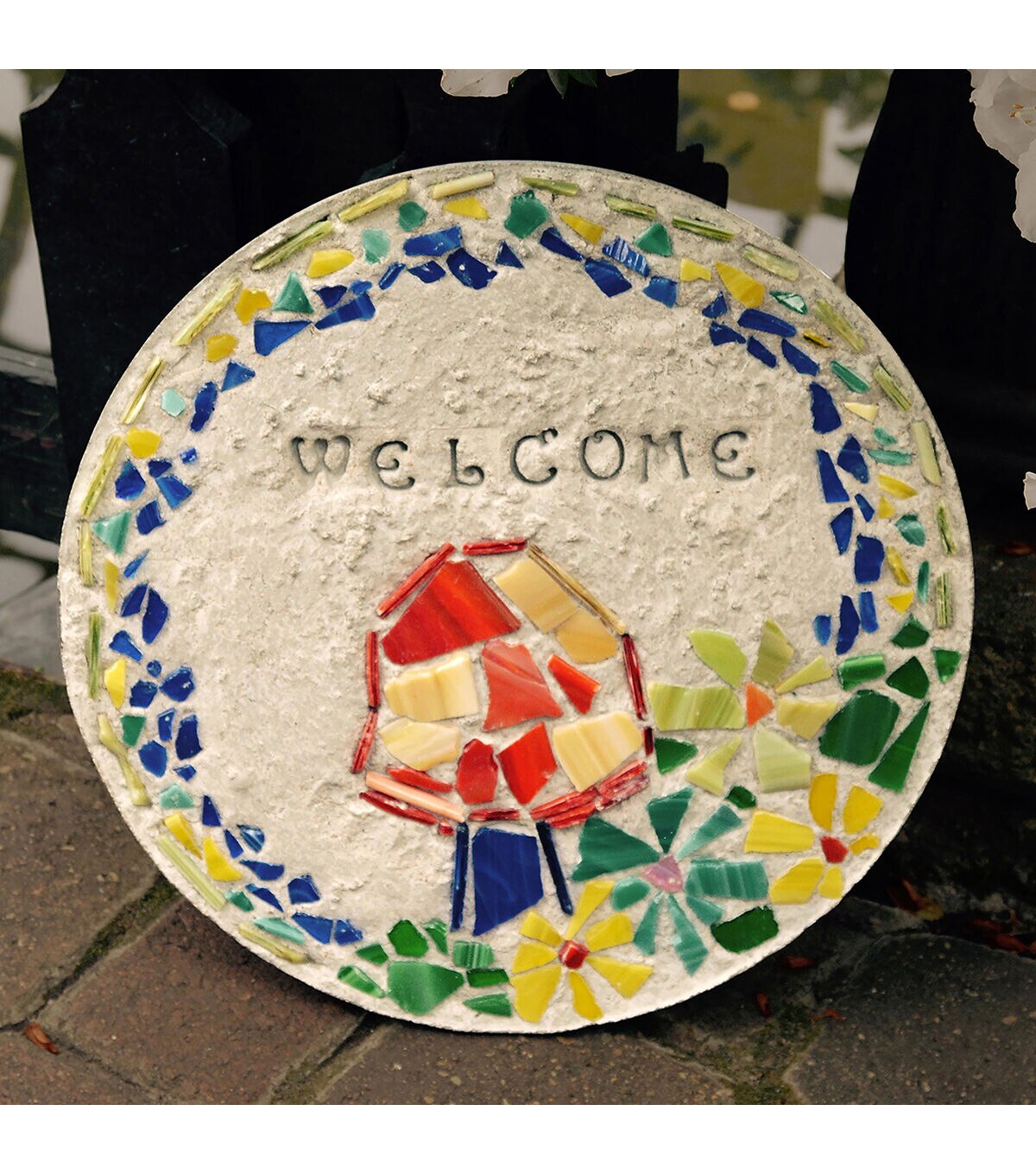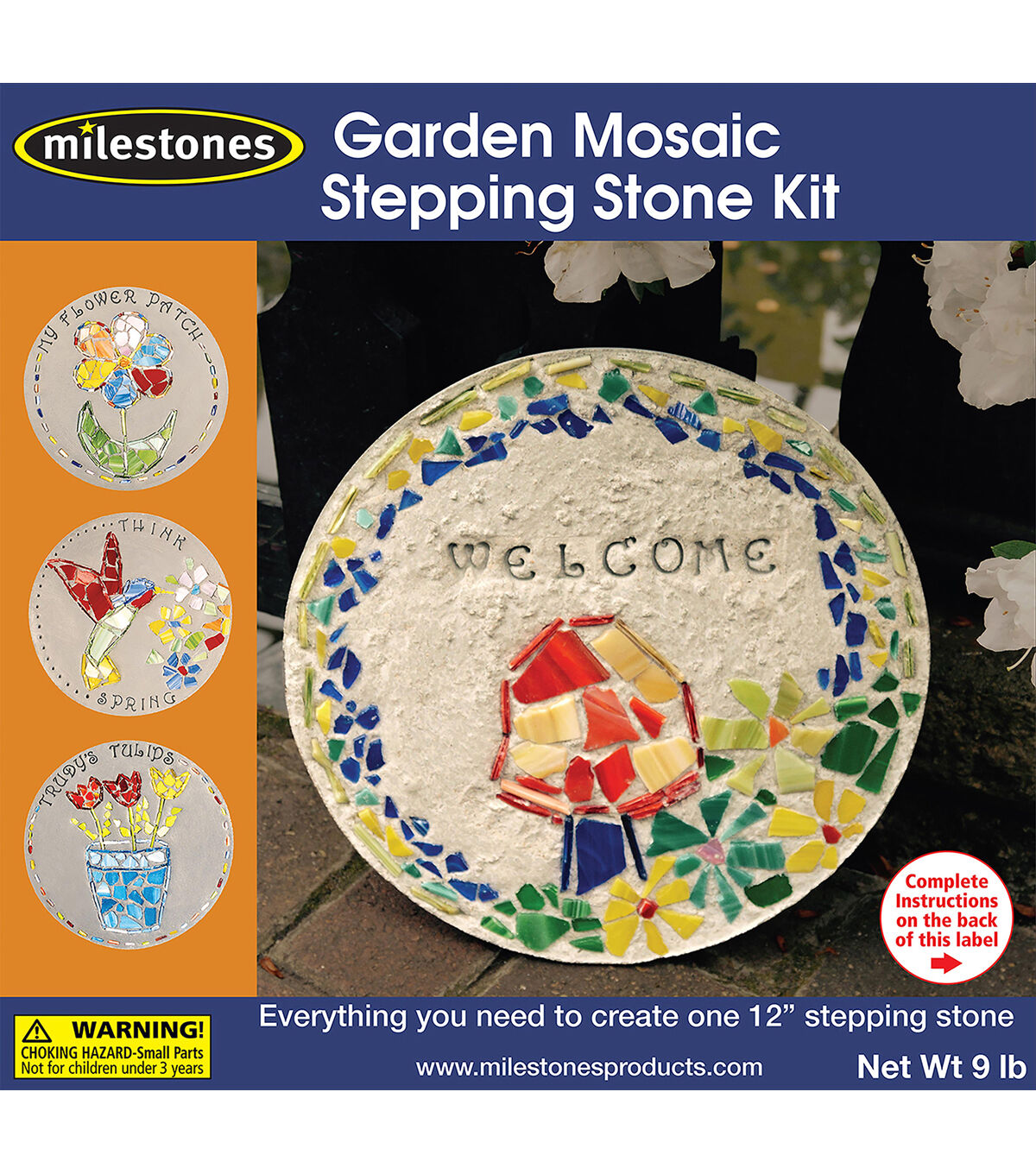 - Kit contains: Victorian style stone stamps, 7 pounds of stepping stone mix, 12'' round plastic mold