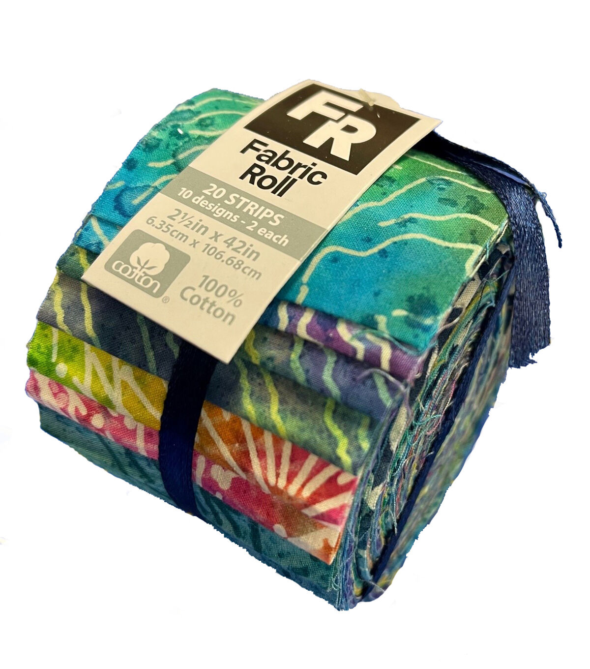 Expand your fabric collection with the Fabric Roll Cotton Fabric-Tie Dye Batik. This pack contains twenty, 2.5 x 42-inch, Fabric Roll fabric strips made of 100% cotton. The roll contains two pre-cut fabric strips each of 10 different tie-dye designs, centered on a batik theme. Available in a variety of colorful themes, each sold separately.