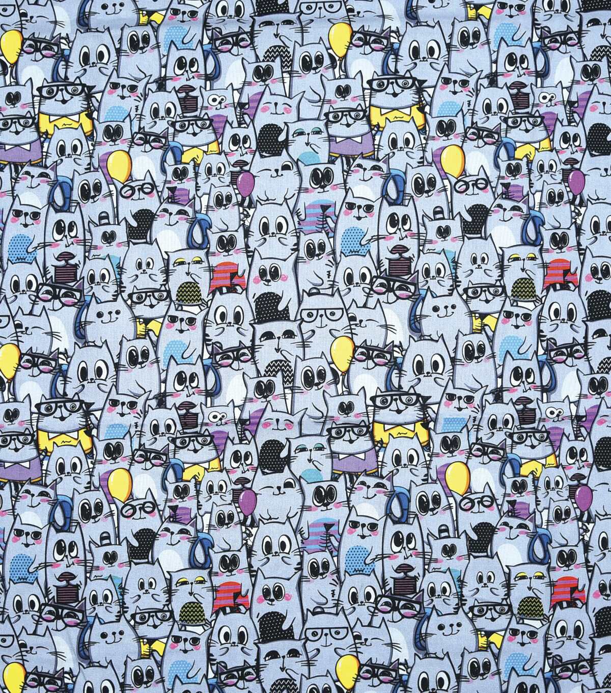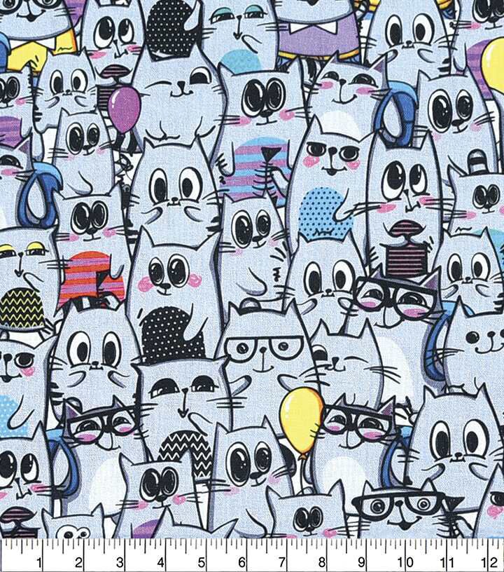 • Multi Cats In Crowd Gray Novelty Cotton Fabric
