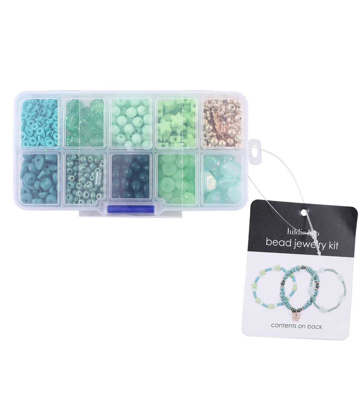 Delight a beading enthusiast by gifting them the Multi Size Spring Green Bead Kit by hildie & jo. This kit includes beads in different shapes sporting blue, green and gold tones. They can team these beads with coordinating jewelry findings to create bracelets, anklets, neckpieces and more. These beads can also be used to create bag charms.