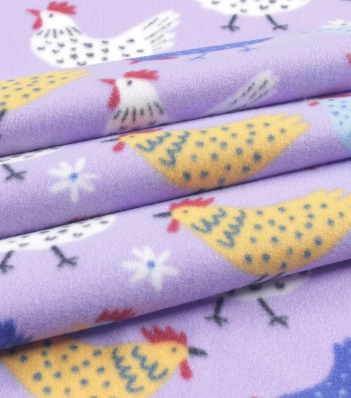 Multi Tossed Chickens Blizzard Prints Fleece Fabric