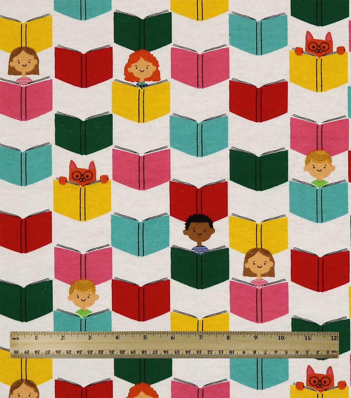 Multicolor Book Reading Super Snuggle Flannel Fabric by POP!
