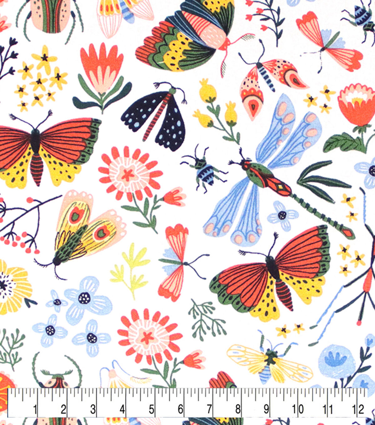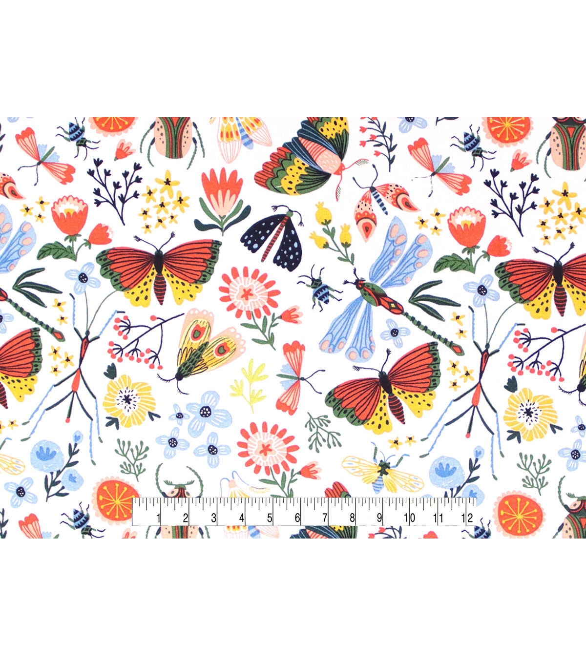 • Multicolor Bright Bugs & Flora Novelty Prints Cotton Fabric