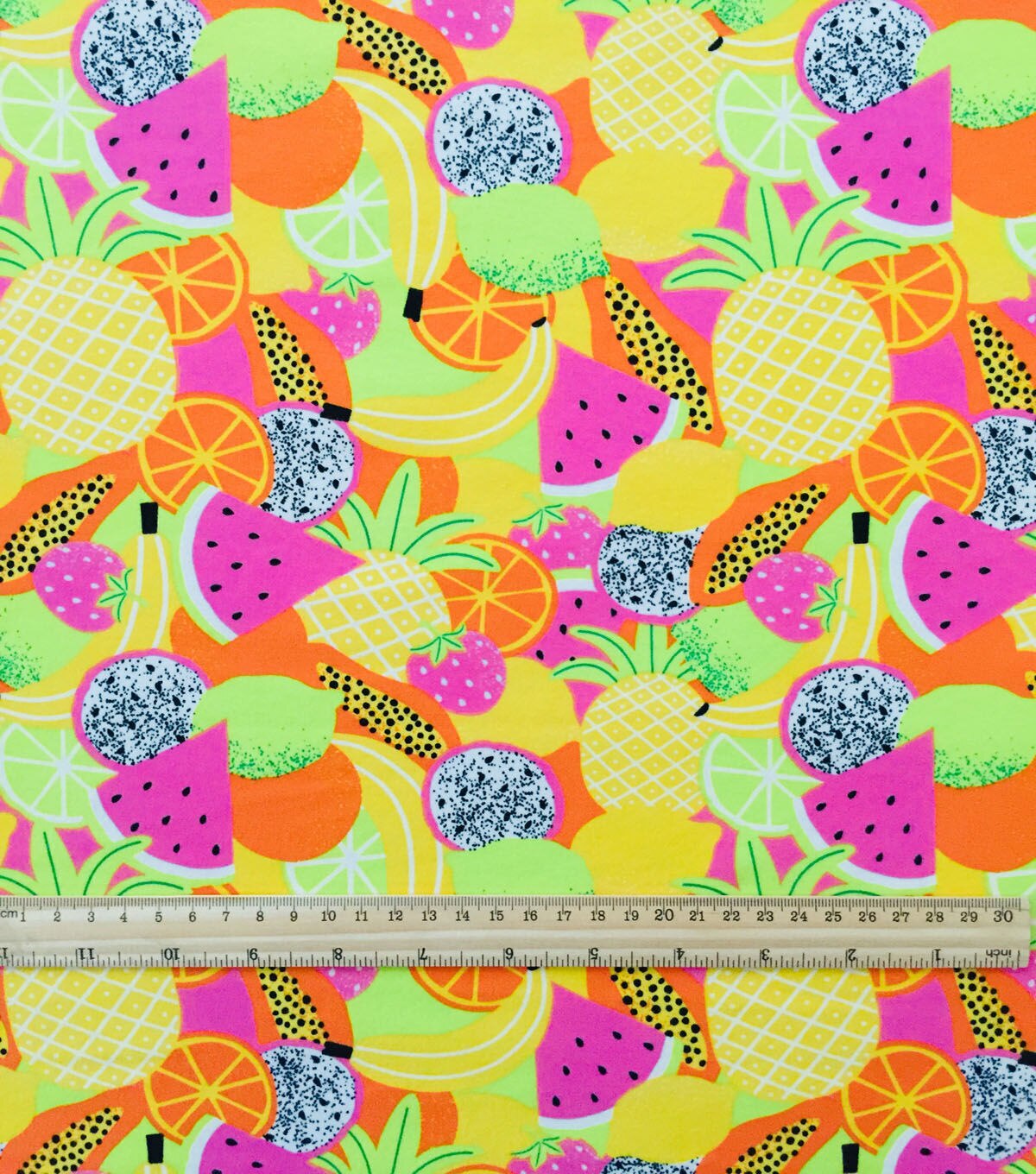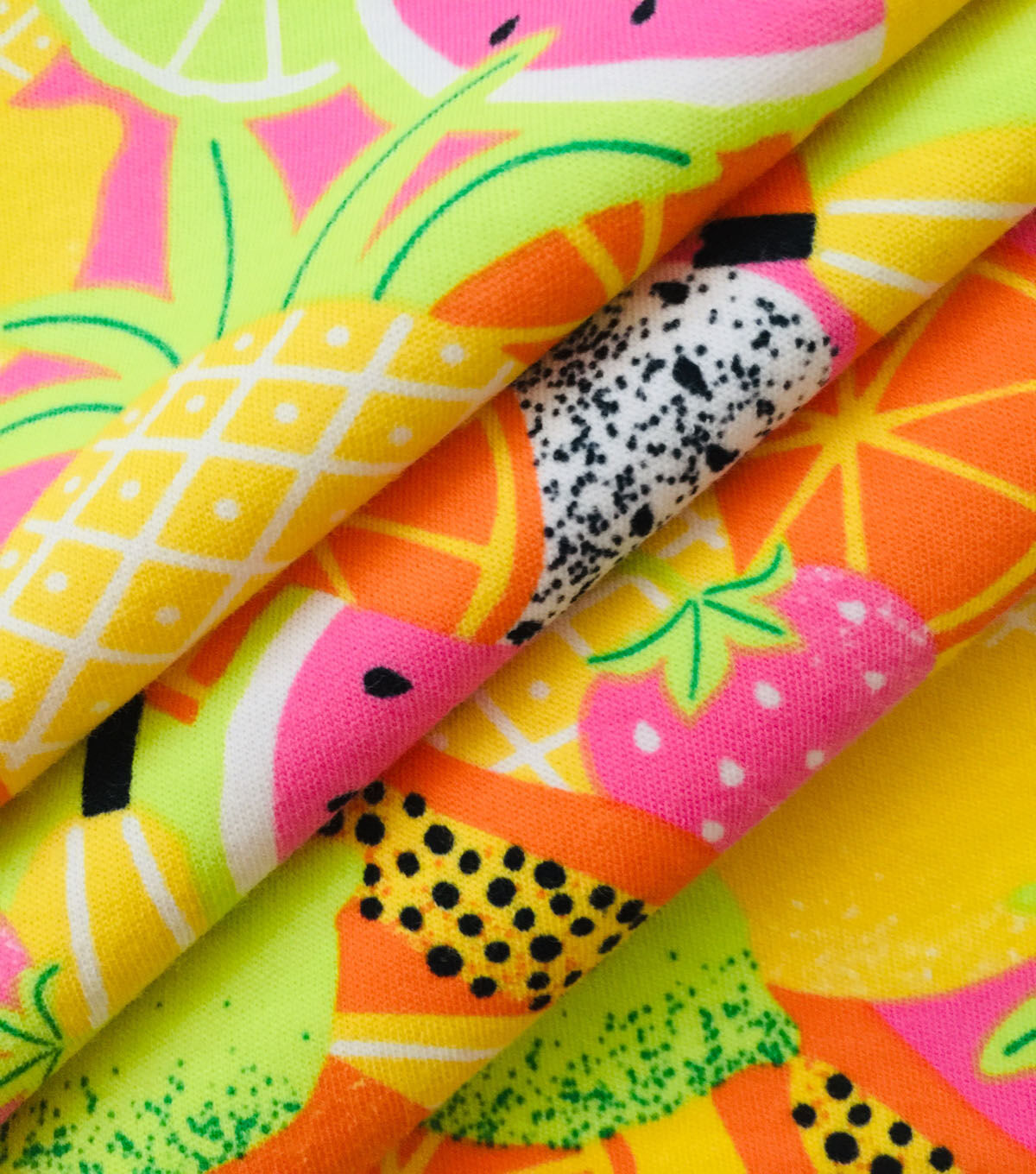 Whether you're making a fun summer dress, a quirky tote bag, or a playful accessory. Multicolor Fruit Cotton Interlock Knit Fabric by POP! is sure to inspire your creativity. So why wait? Add this fun and fruity fabric to your collection today!