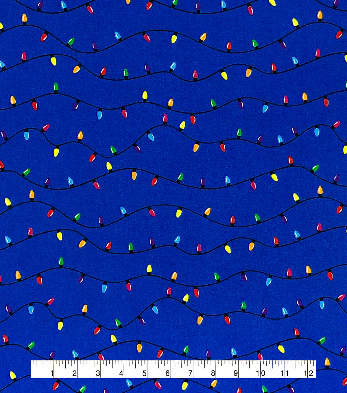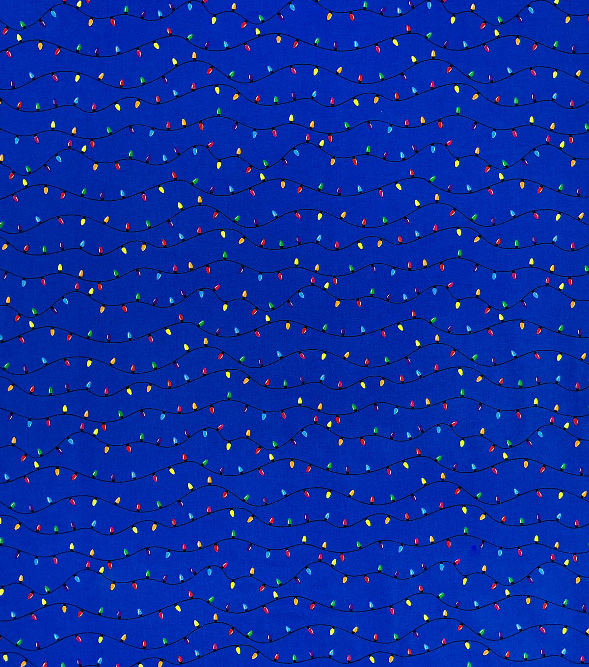 • Multicolor Lights on Blue Christmas Cotton Fabric