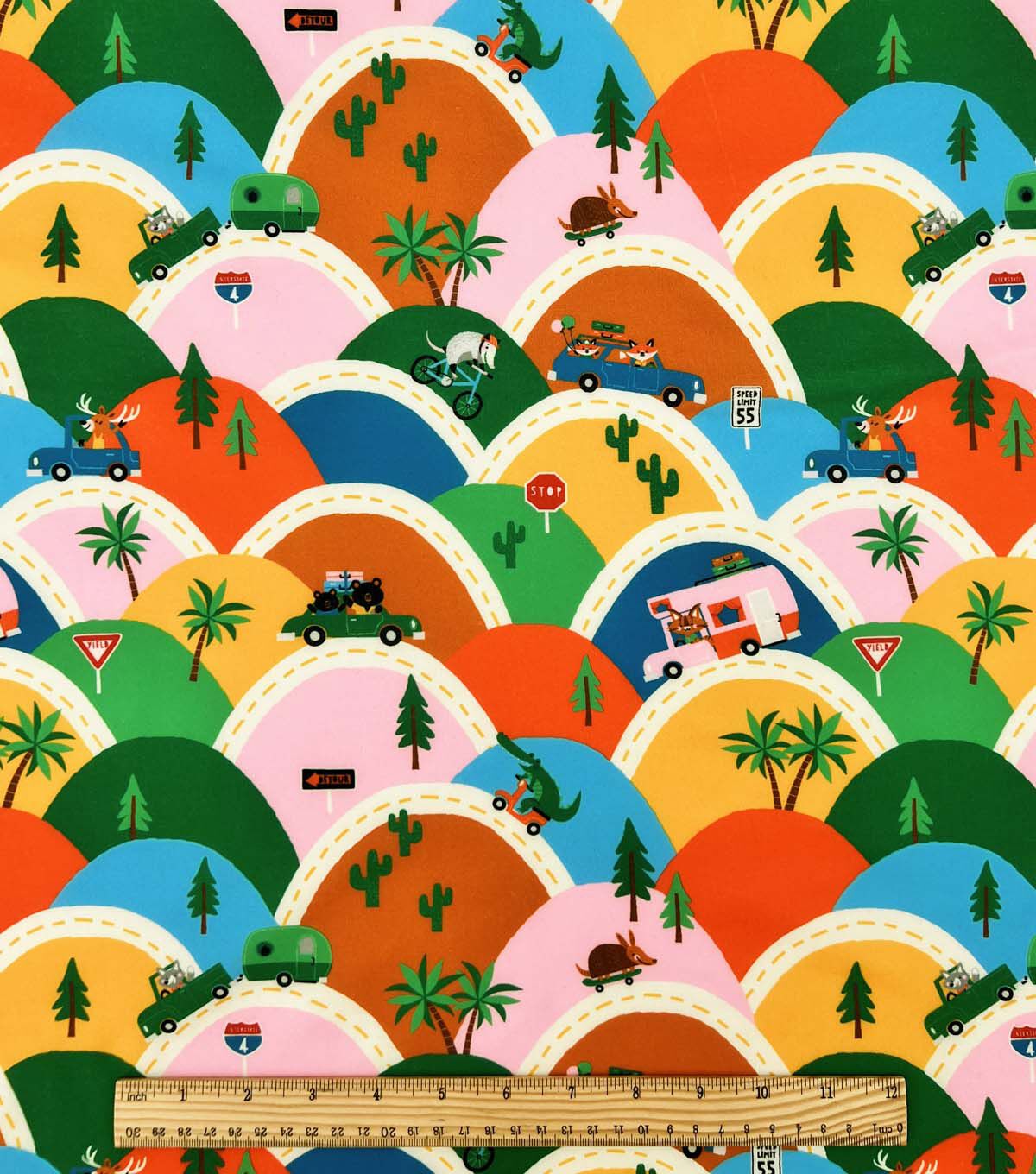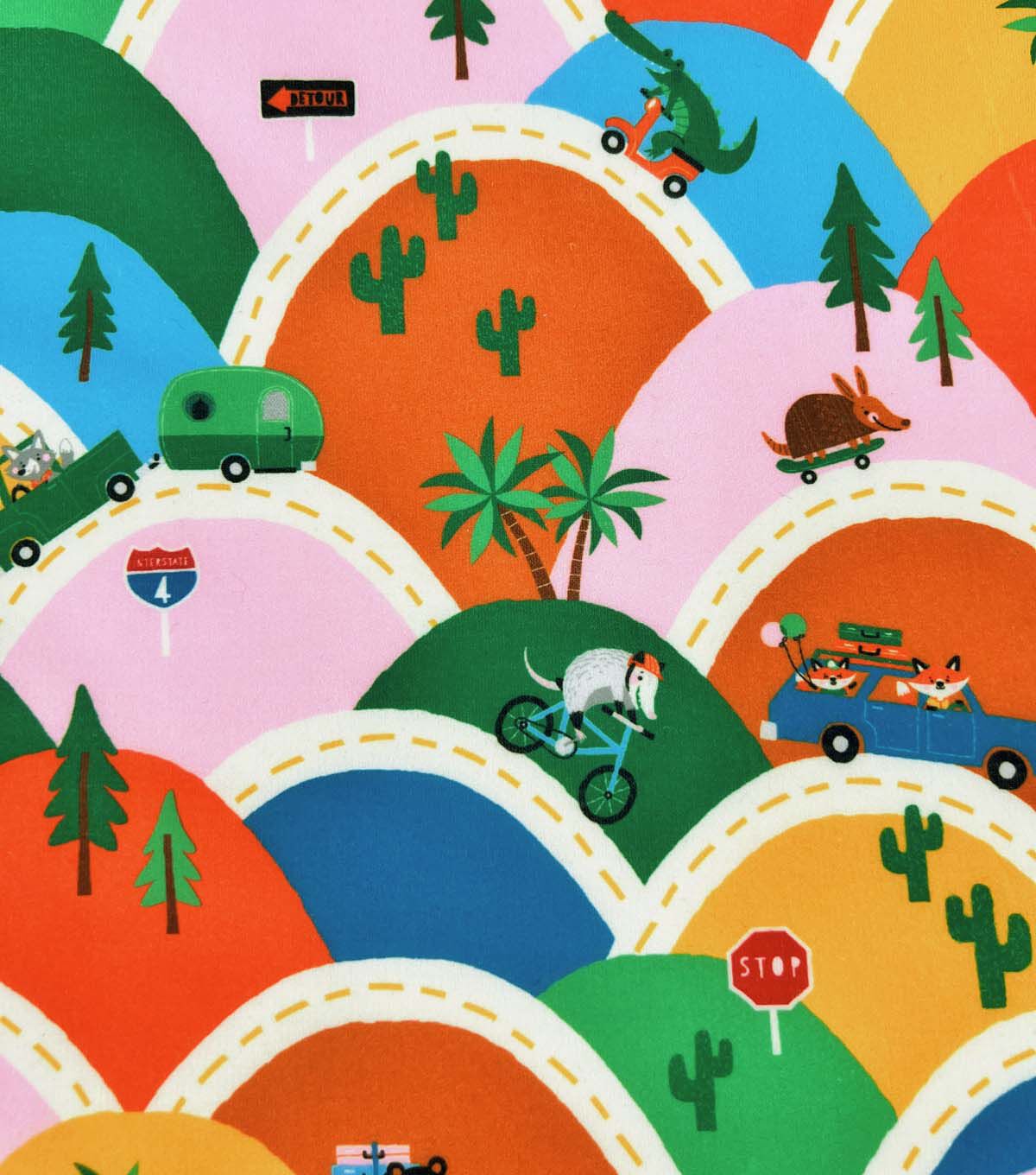Add a touch of nature to your next sewing project with Multicolor Mountains With Trees Brushed Terry Fabric by POP!. This stunning fabric features a beautiful mountain landscape with trees in vibrant colors that will bring your project to life. The 53-inch width and 68% Polyester 29% Rayon and 3% spandex content make it perfect for a variety of projects, from cozy blankets to stylish clothing.