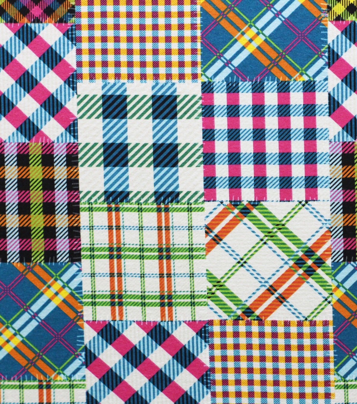 Multicolor Neon Stitched Patched Plaid Super Snuggle Flannel Fabric