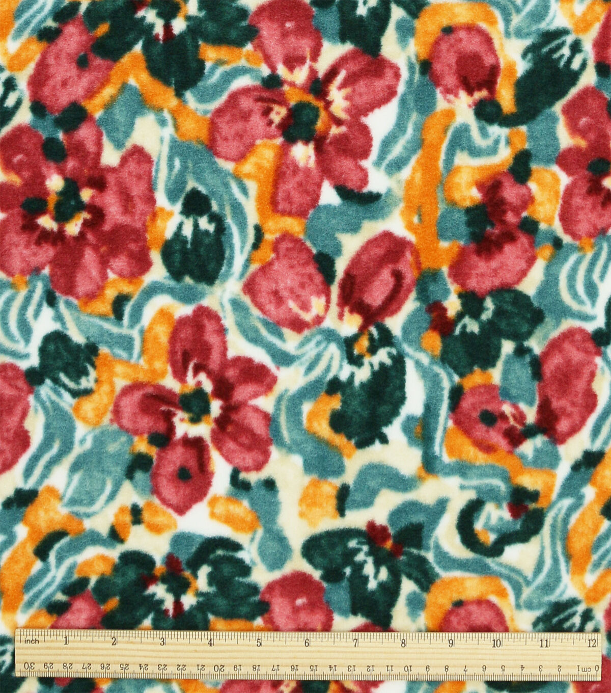 • Multicolor Painted Floral Luxe Fleece Fabric