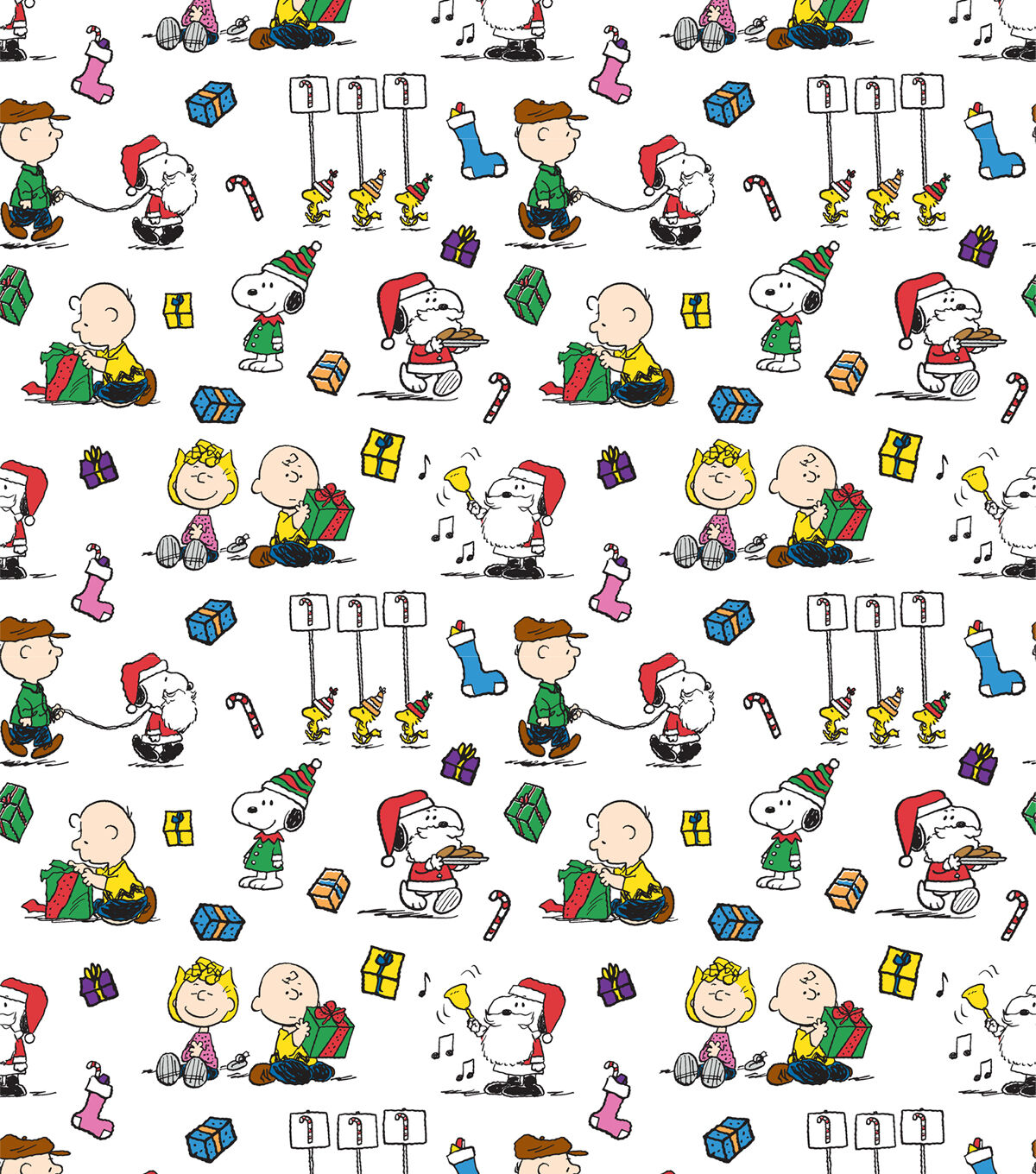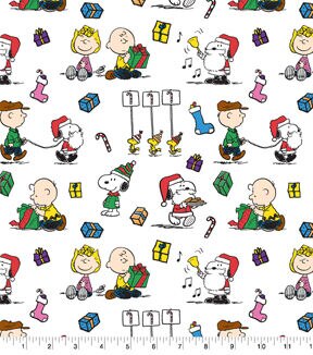 Multicolor Peanuts Gathering Christmas Cotton Fabric