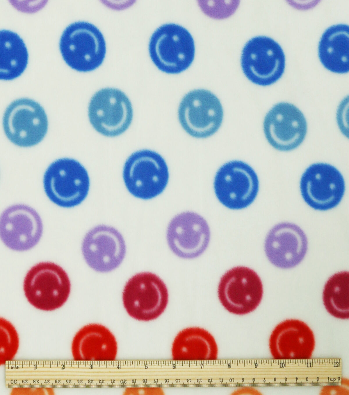 • Multicolor Smiley Faces Anti Pill Fleece Fabric