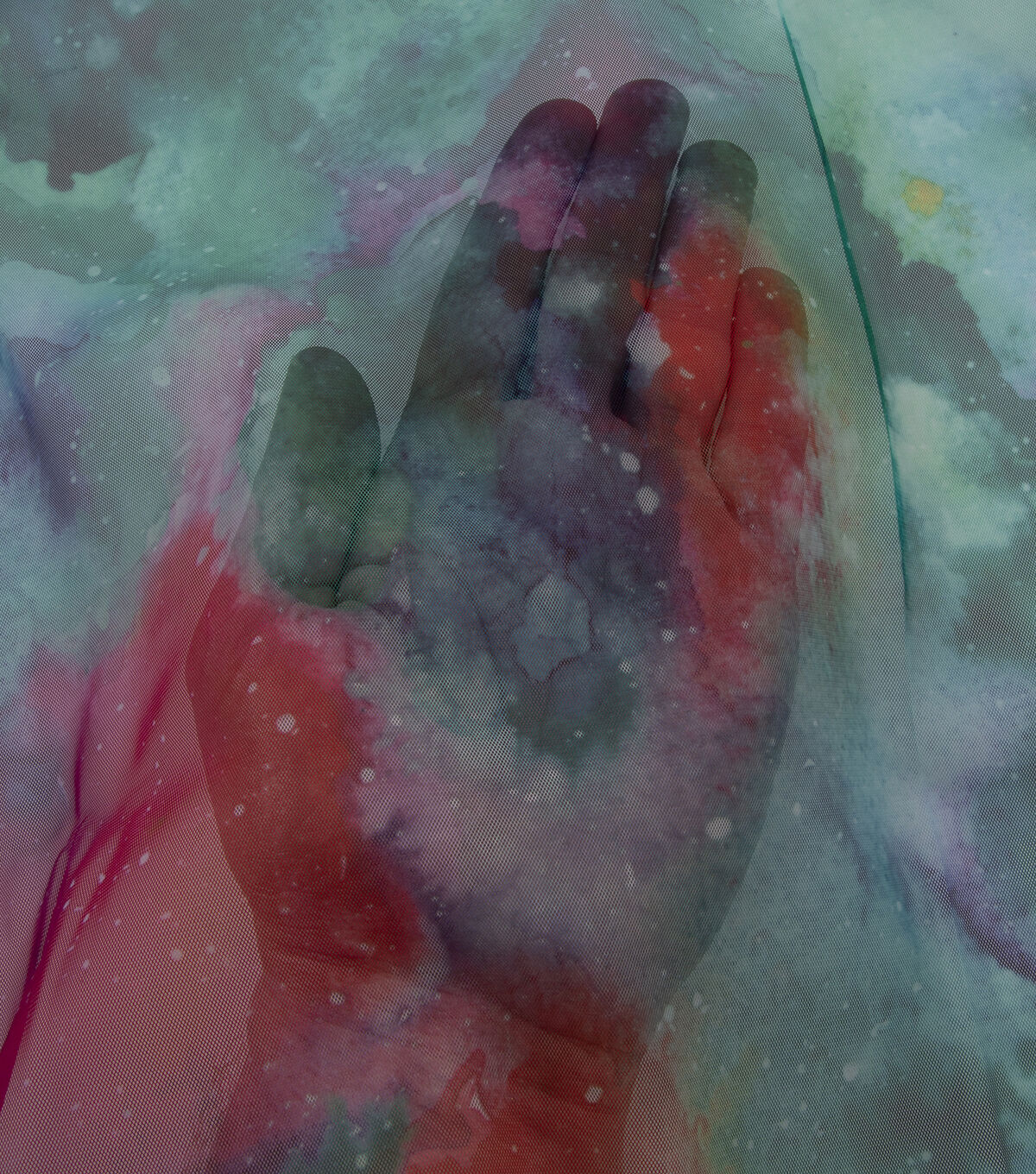 • Multicolor Watercolor Printed Tulle Fabric