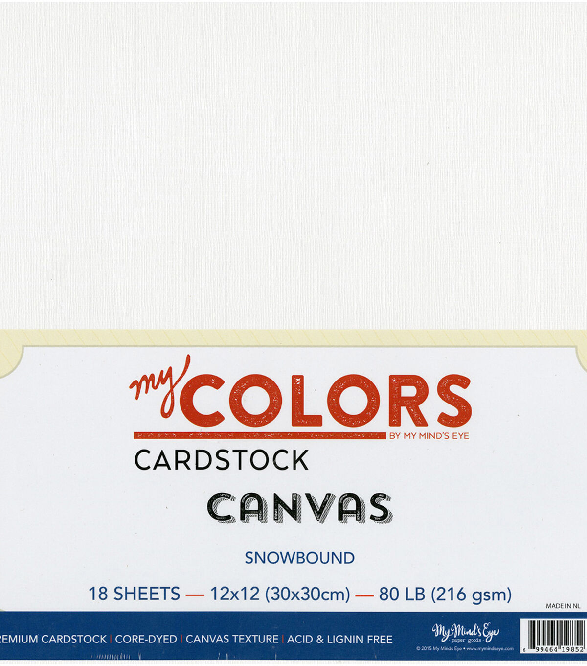 My Colors-Canvas Cardstock Bundle: Snowbound. The perfect start to your next scrapbooking card making and mixed media project! This package contains eighteen 12x12 inch canvas texture 80lb sheets in the same color. Acid and lignin free. Made in USA.