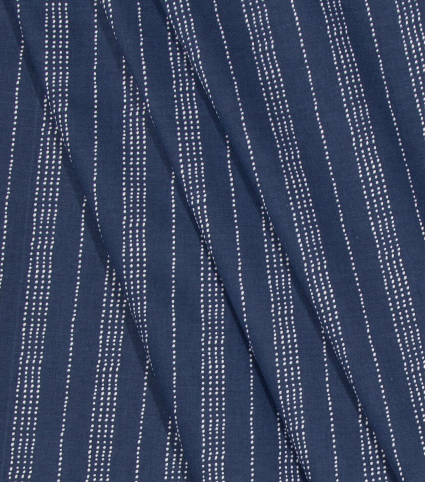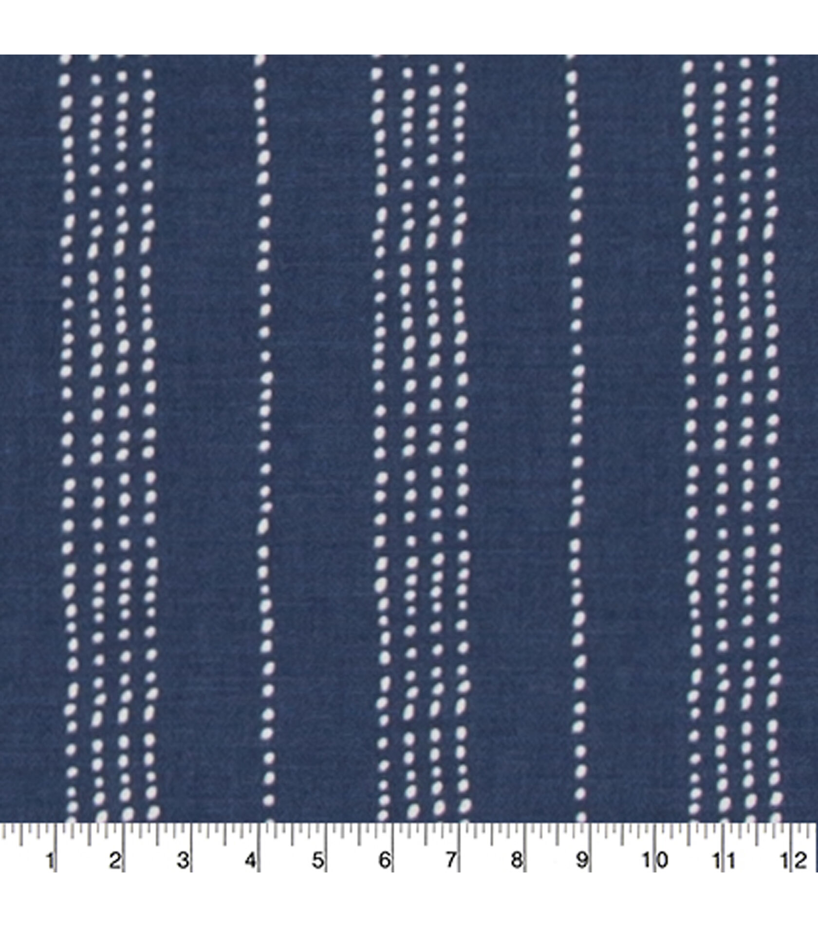 The attractive Nate Berkus Upholstery Fabric-Dark Blue Litton Stripe Paramount is a great choice for upholstered furniture, slip covers, roman shades, decorative pillows and more. With the ability to withstand more than 15000 double rubs, this 100% cotton fabric is versatile and durable. Enhance the look further with burlap bows and crocheted lace trims.