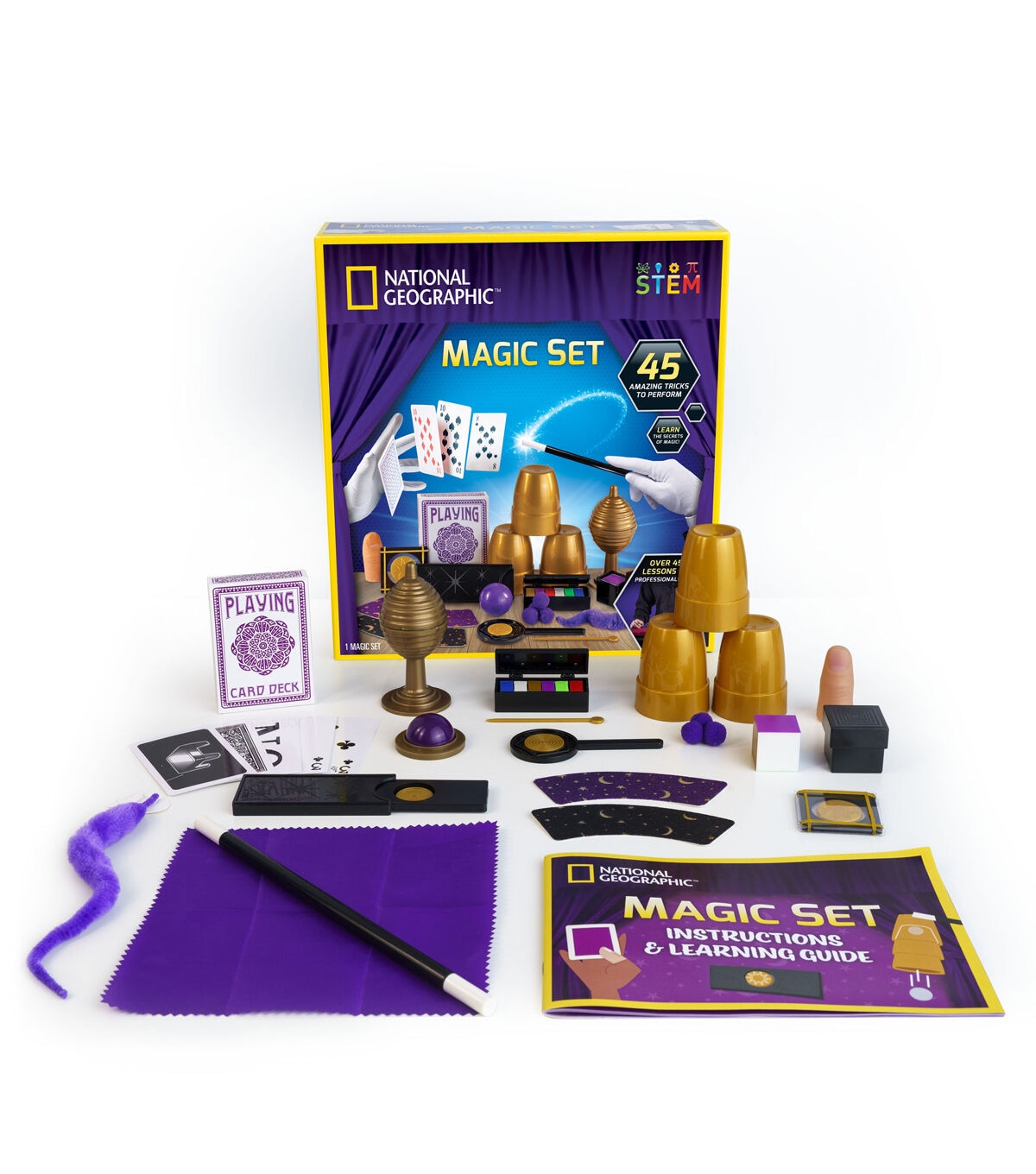 The National Geographic Magic Set gives kids everything they need to perform more than 45 incredible magic tricks! Kids will use the broad assortment of props in the kit to amaze their friends and family! They’ll learn how to make coins and cards disappear, how to levitate a squiggly worm, the secrets behind several classic tricks, and a whole lot more. A special magician’s card deck allows kids to perform numerous sleight-of-hand tricks as well. Kids will also get access to video tutorials for each trick, with performance tips and techniques provided by a professional magician! Additionally, kids get a fascinating learning guide with insight into the history of magic and science behind the tricks in the kit! This is a great magic set for beginners, thanks to the wide variety of tricks that are both easy to learn and perform. It’s also great for more experienced magicians because of the performance insights and technique instructions provided in each of the video tutorials. Get the National Geographic Magic Set today!