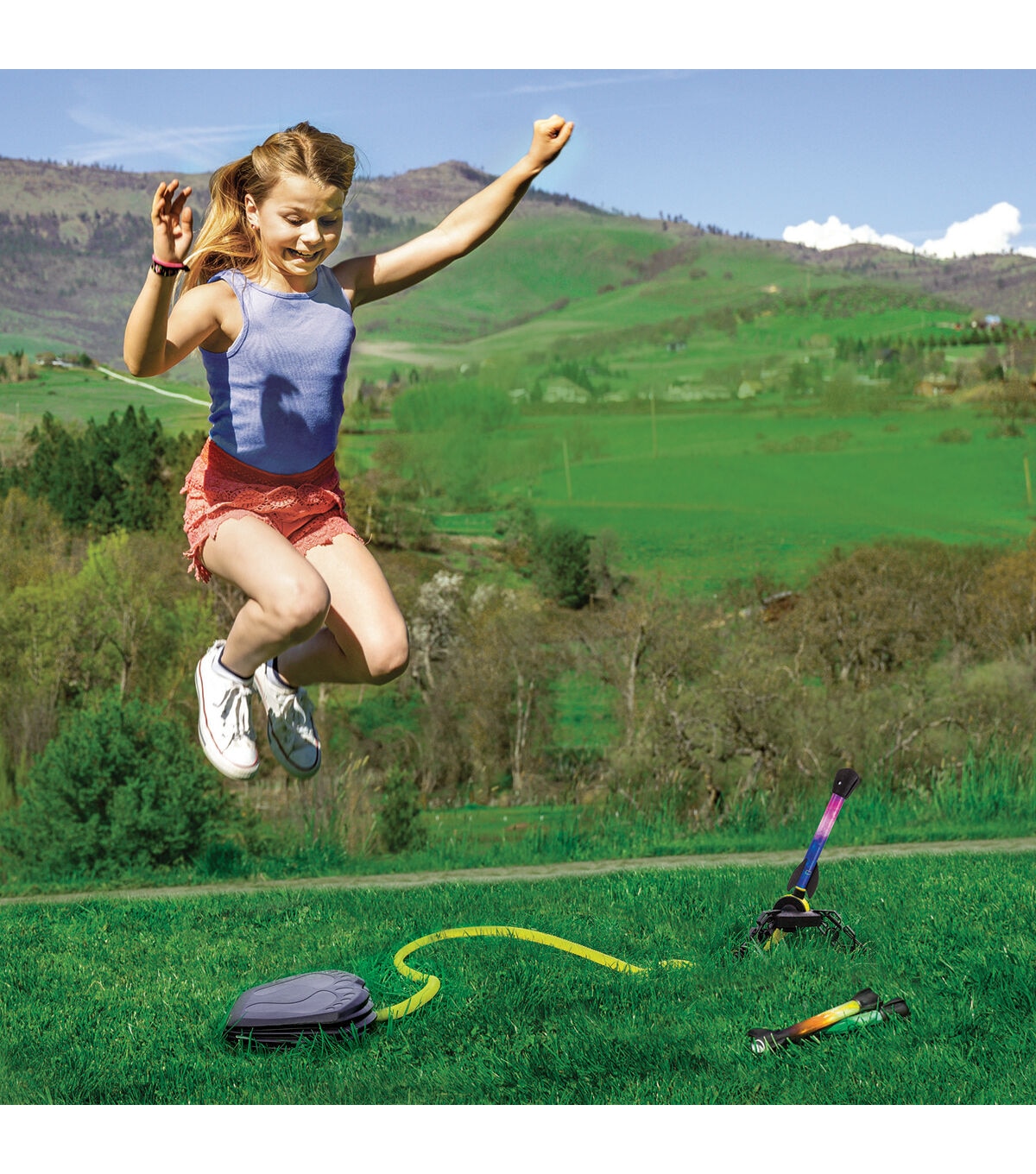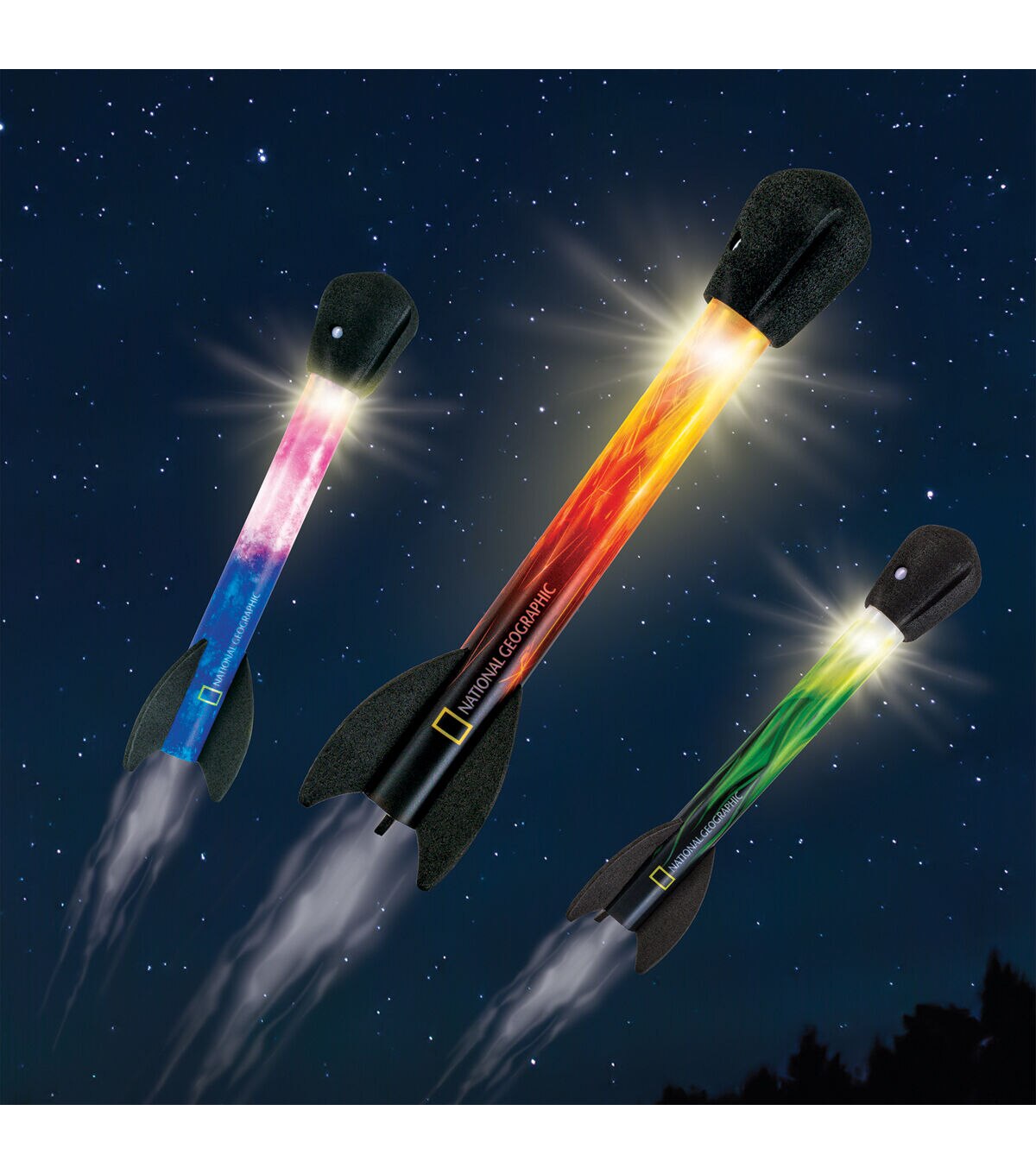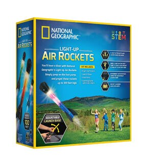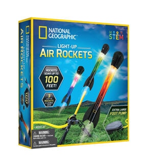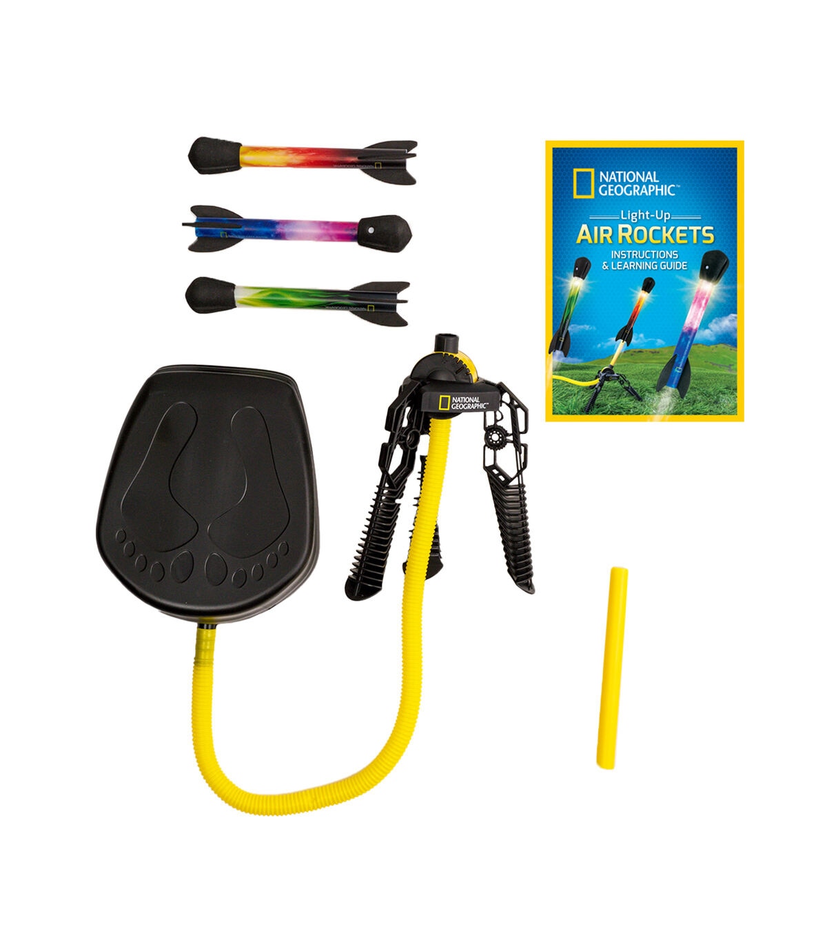- Includes 3 Light-Up Air Rockets, Launch Base and Foot Pump