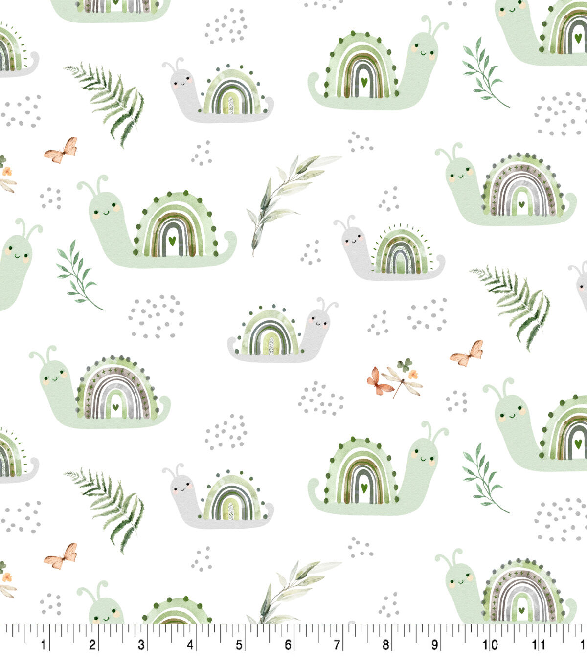 • Nature Crawls on White Nursery Flannel Fabric