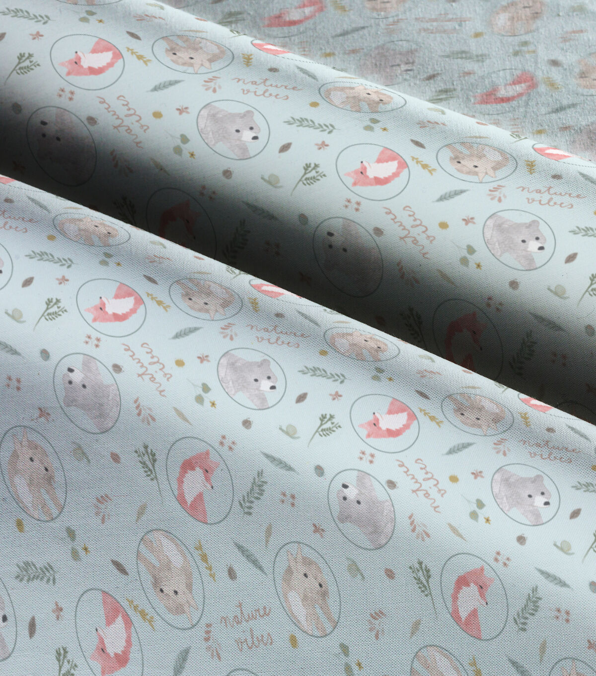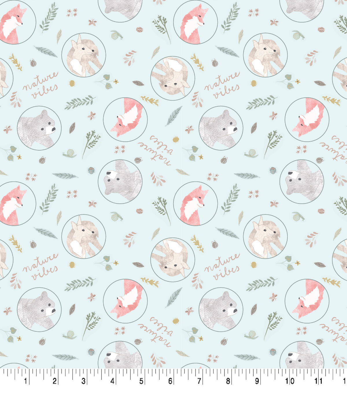 • Nature Vibes Woodland Animals on Blue Nursery Flannel Fabric