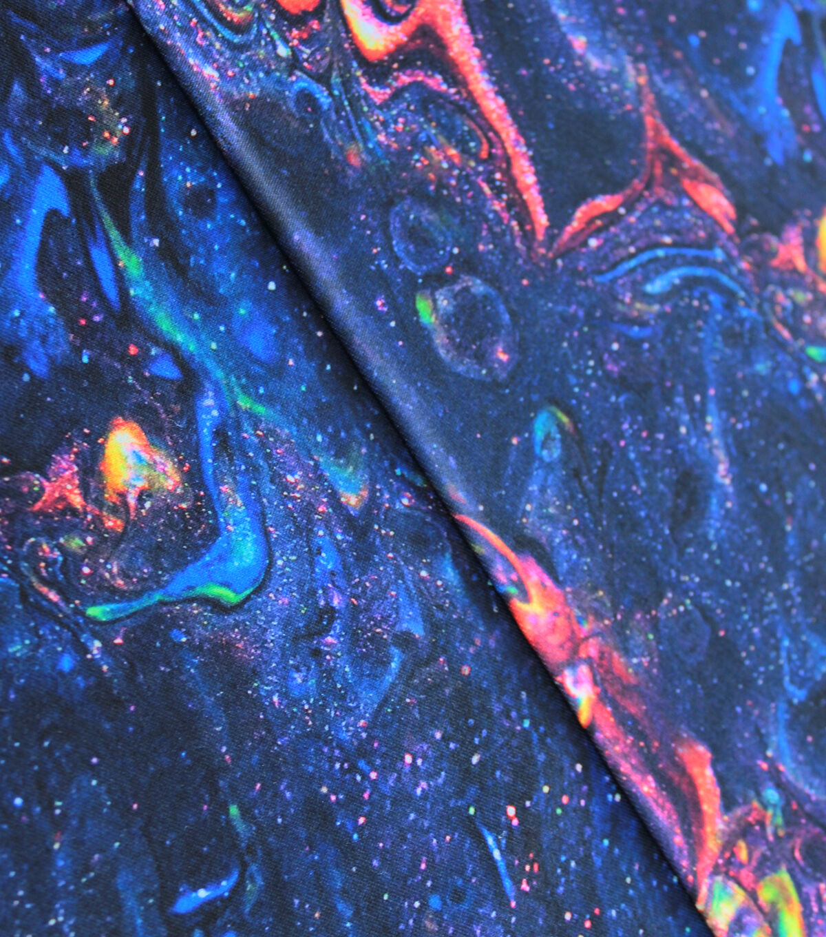 Experience the Beauty of the Navy Galaxy Swirl Double Brushed Jersey Knit Fabric