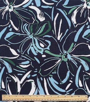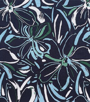 Effortlessly Create a Chic Dress with Navy Large Paint Floral Smocked Rayon Challis Fabric