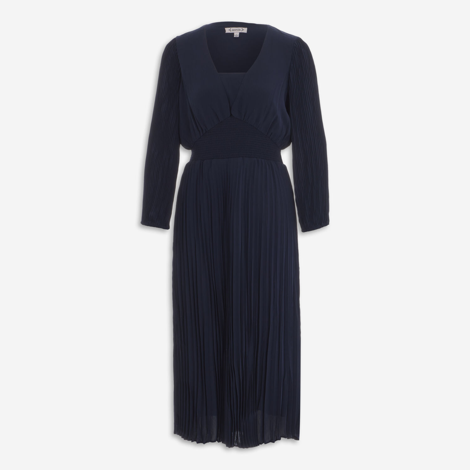 • Navy Pleat Midi Dress