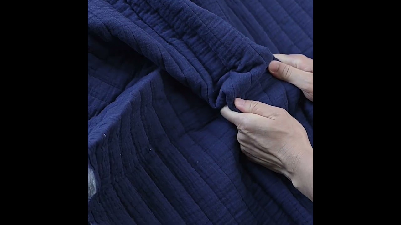 Navy Quilted Bubble Gauze Fabric by POP!